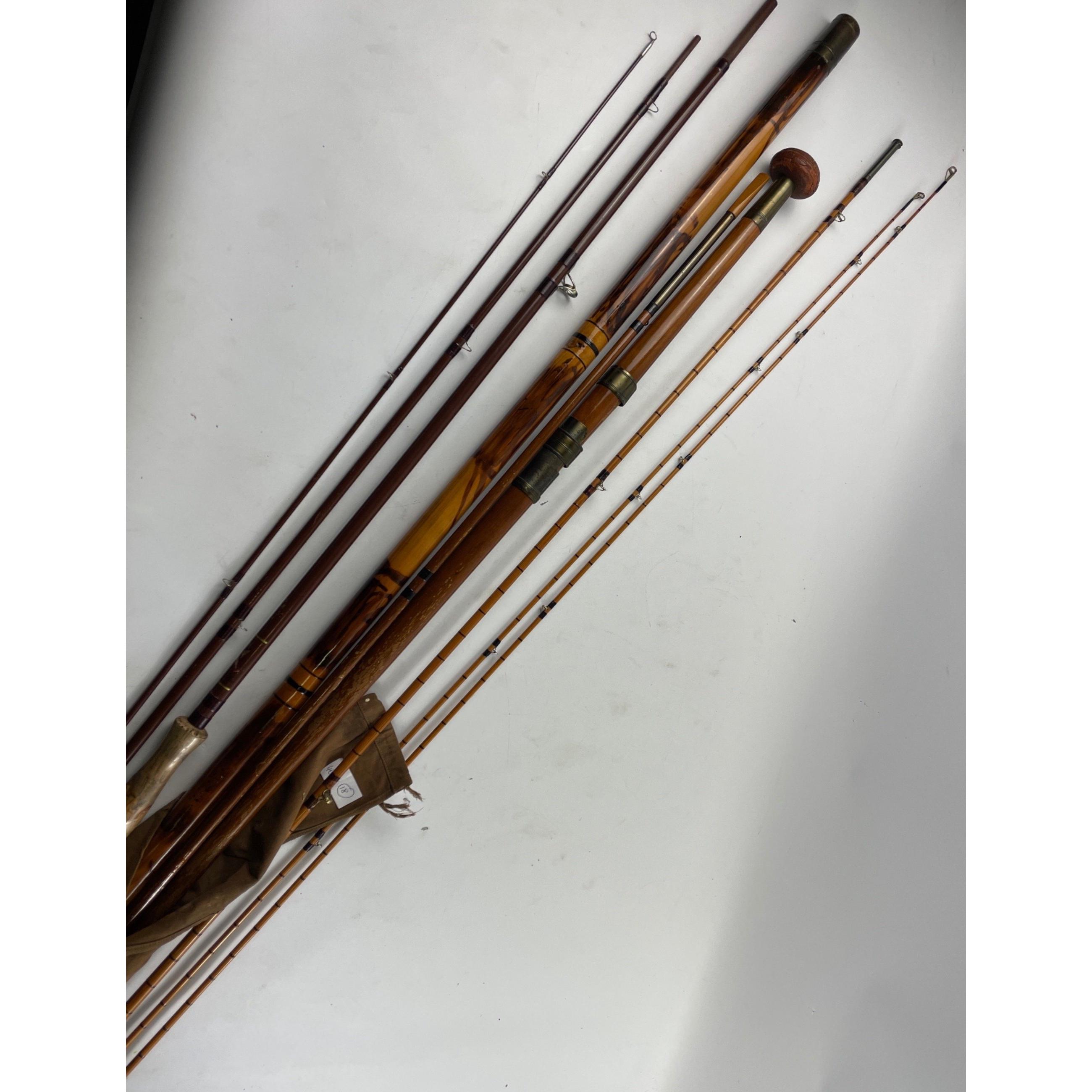 BRUCE & WALKER fibreglass Loch LLV #6 line 10' 3 piece fly rod in original bag plus a late Victorian C FARLOW & CO, MAKERS, 191 Strand London, 14 1/2' GREENHEART SALMON fly rod, 3 piece and spare tip, original screw top bamboo tip carrier tube, original rod bungs and a 1919 HARDY PALONAKA split cane THE PERFECTION 2 piece 9 1/4' fly rod plus spare tip serial number B23188, original bag (re-tipped).