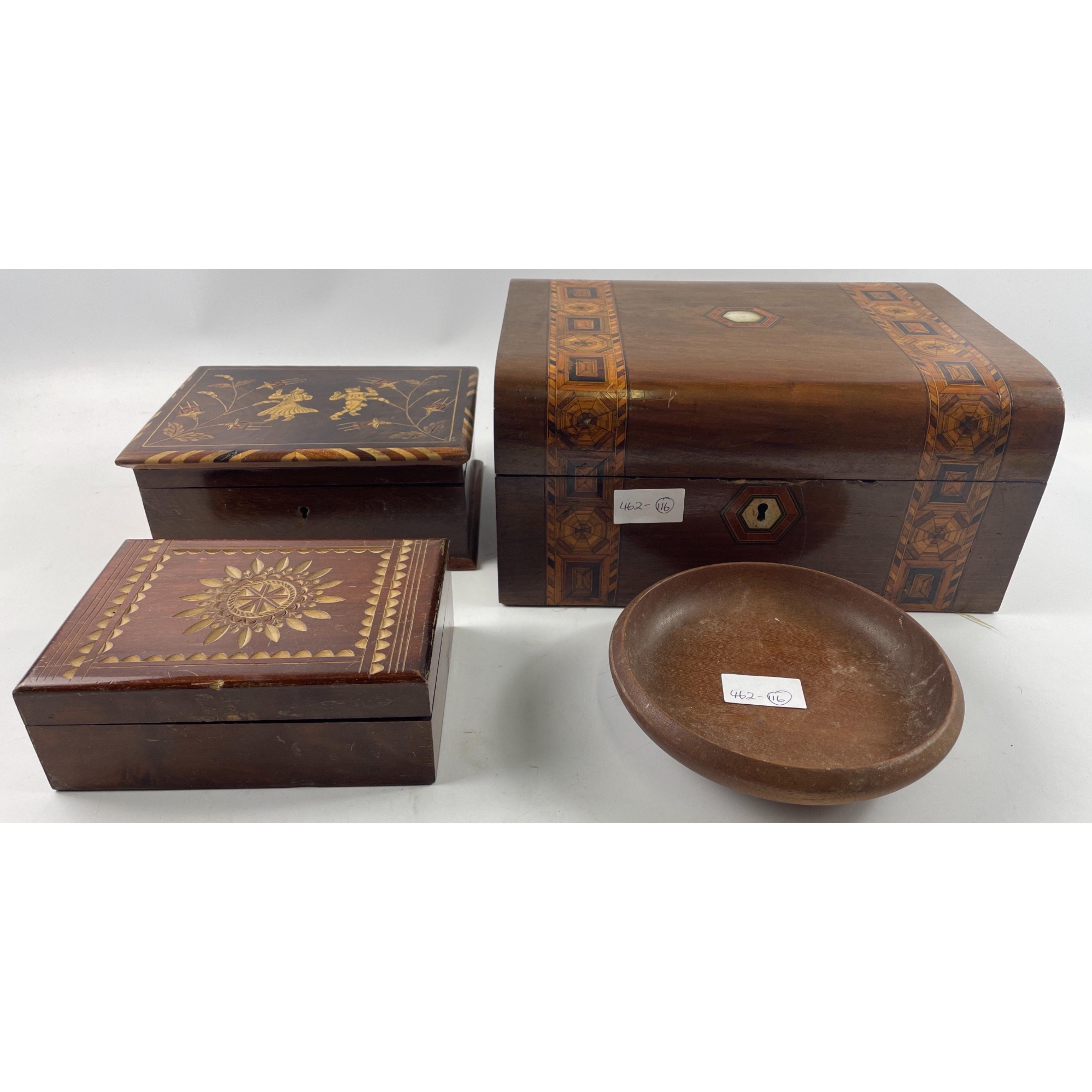 A nice circa 1920's travelling trunk with protective bentwood straps and a nice wooden outer skin effect