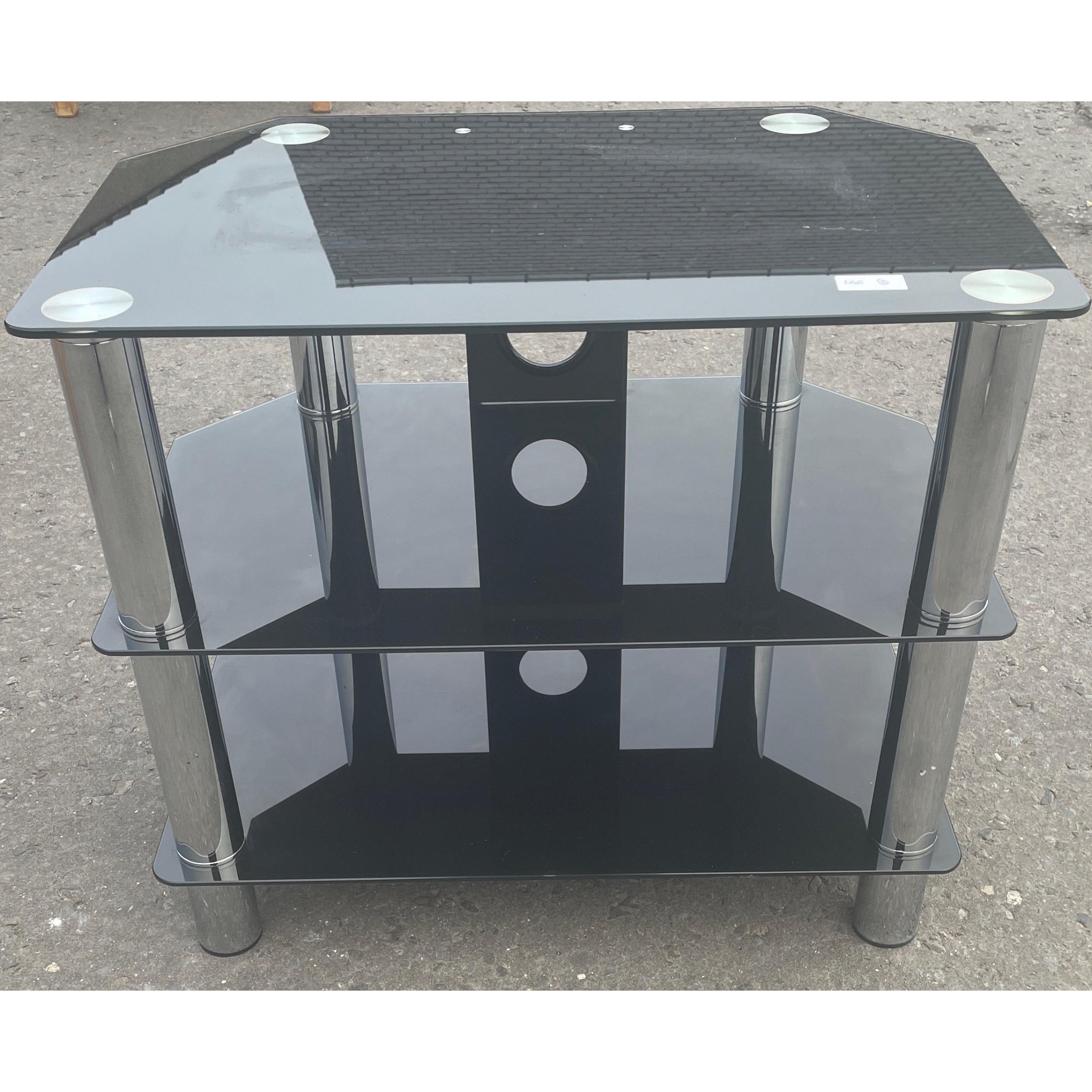 Small three shelf smoked glass and stainless steel MEDIA TABLE - lovely condition as new condition!