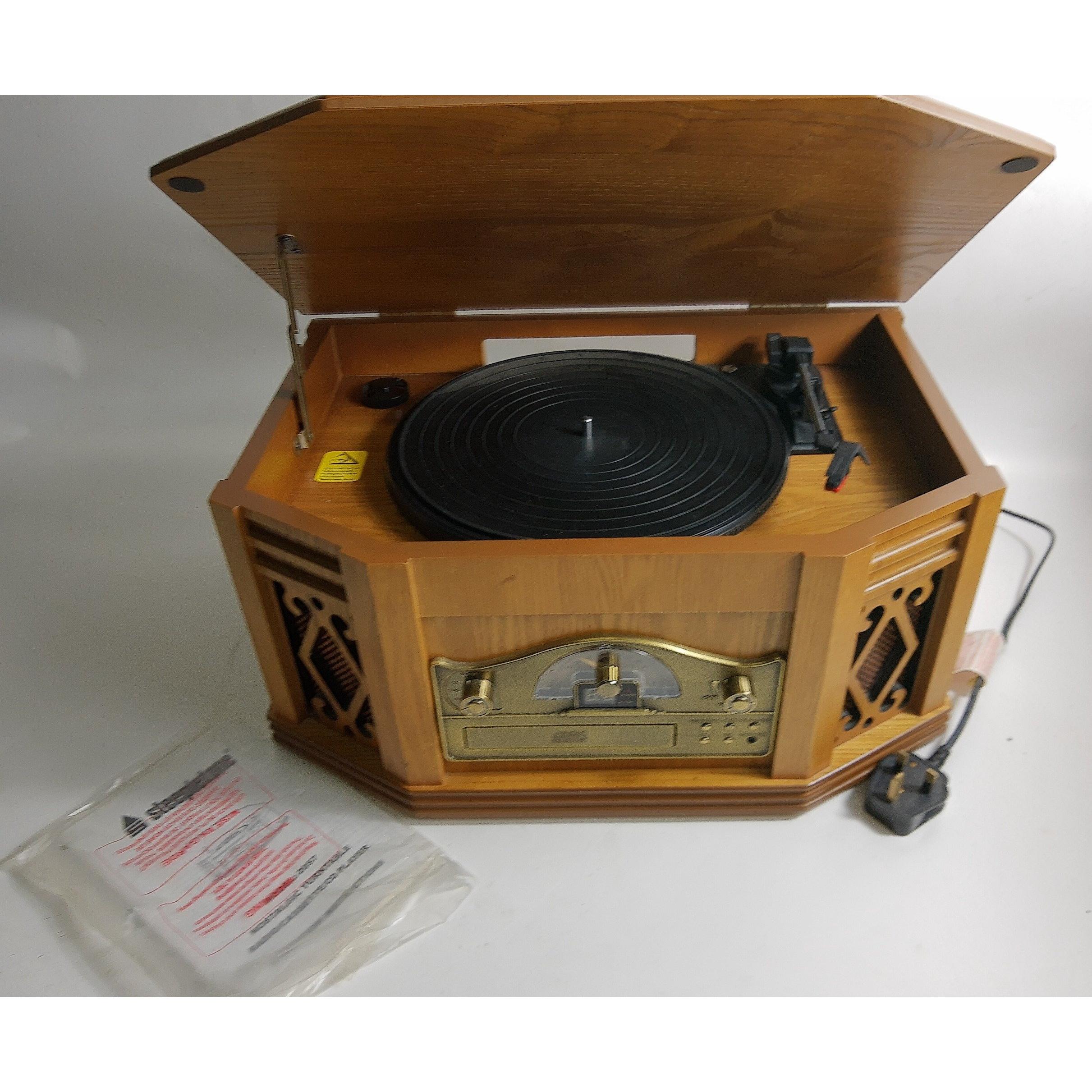 A RETRO STEEPLETONE multi-function RADIO/CD with TURNTABLE.