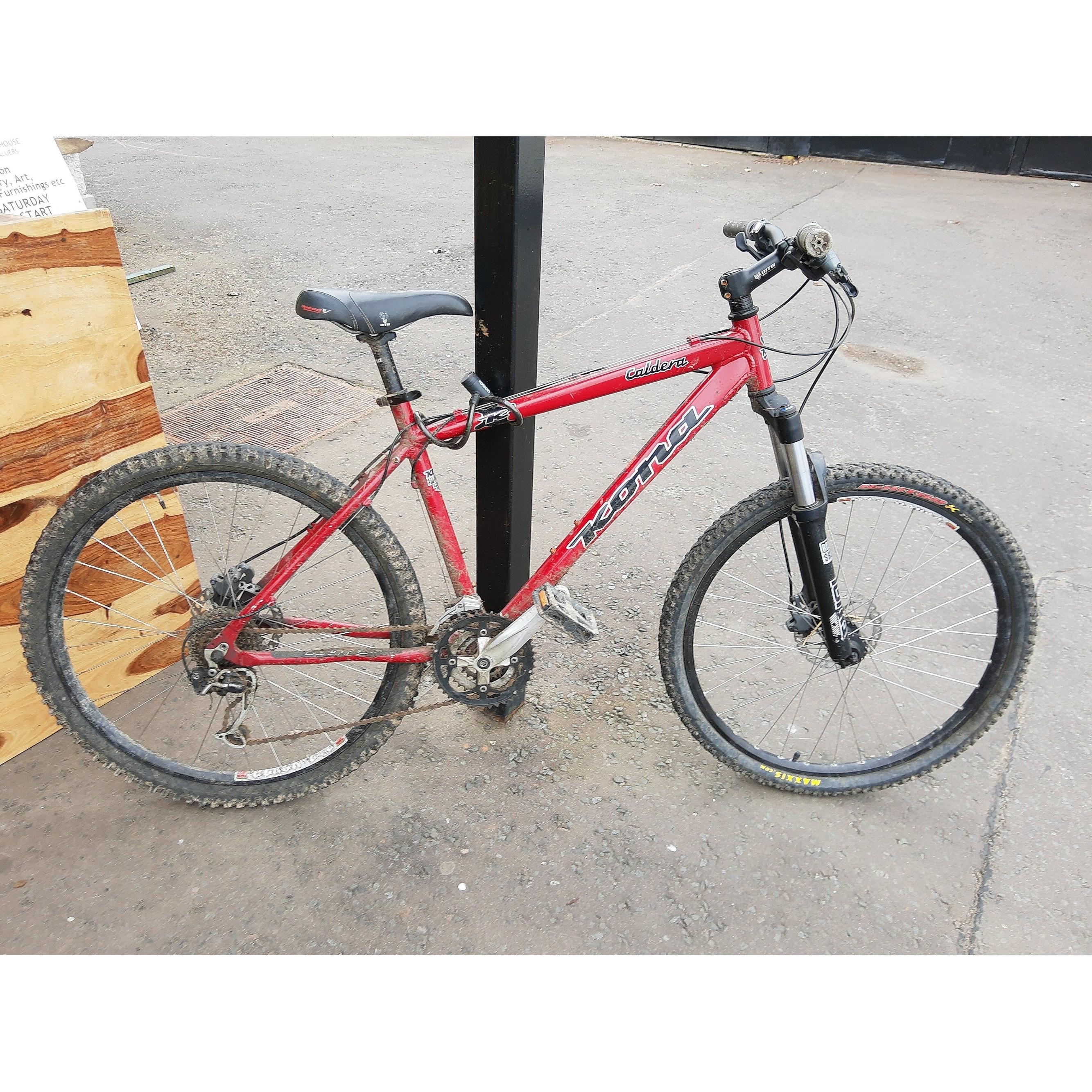 A KONA branded gents mountain bike in red livery 1m from ground to top of handle bars
