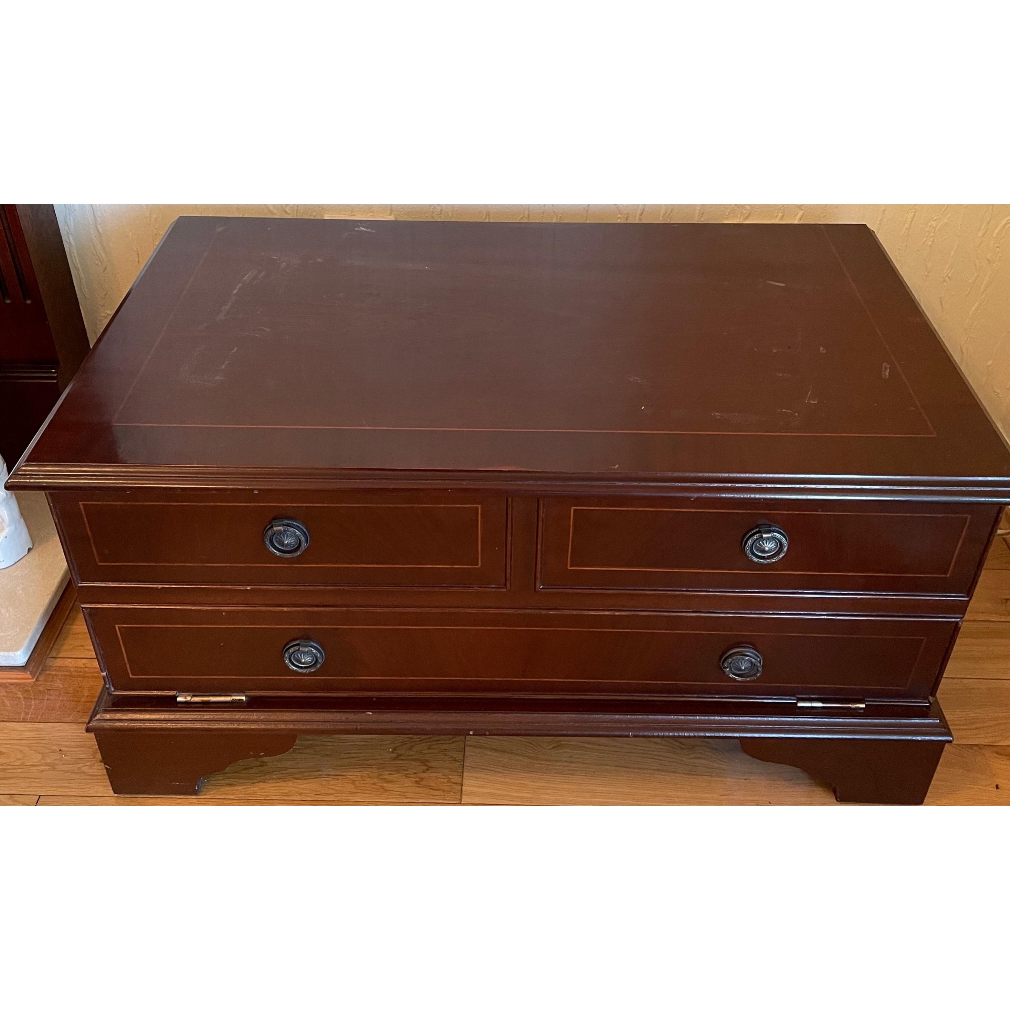 A pirate style domed topped chest with carry handles either end FILLED WITH TREASURE INSIDE