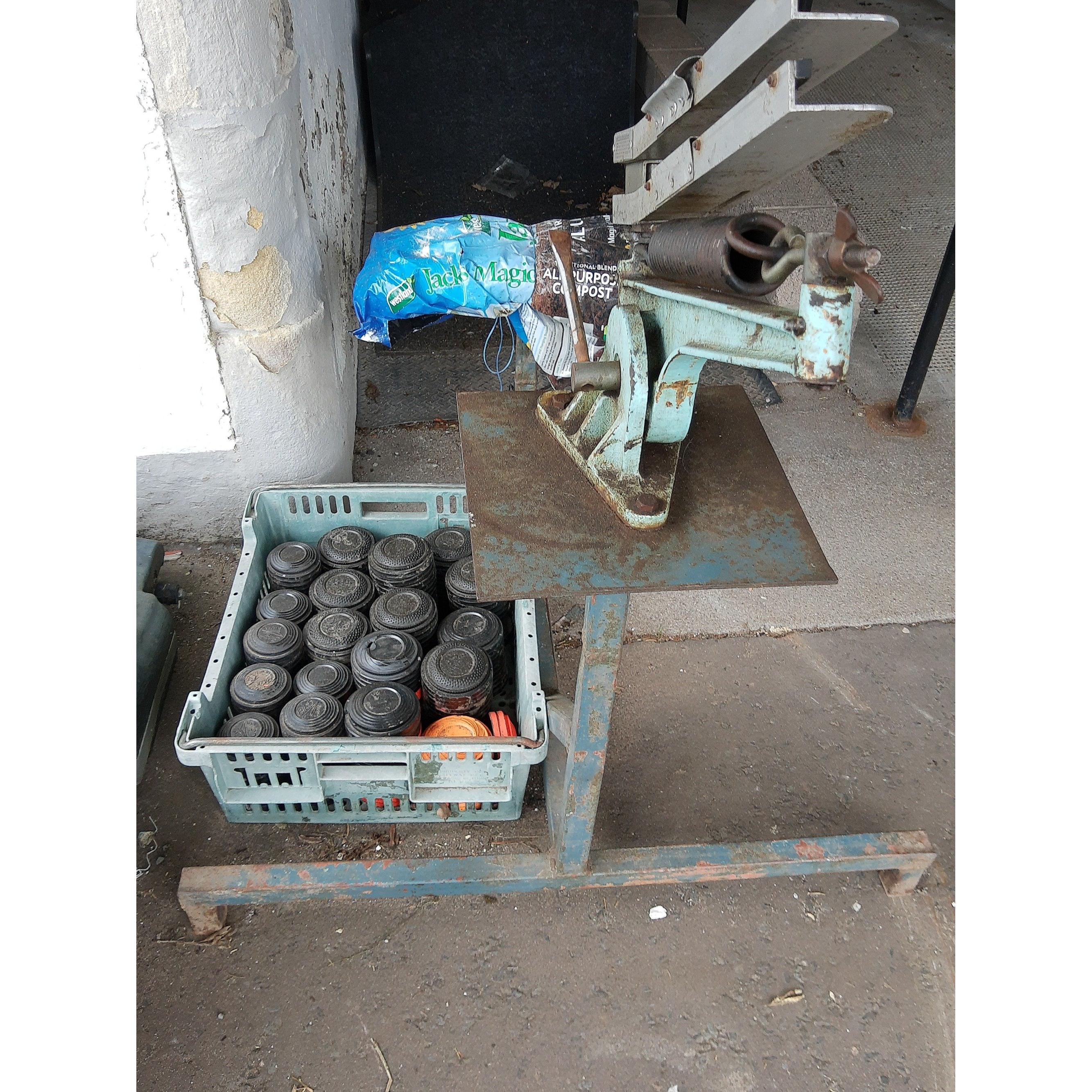 PULL! A CLAY-PIGEON pull and a large basket FULL of clay discs3.5fg height 3.5ft length approx