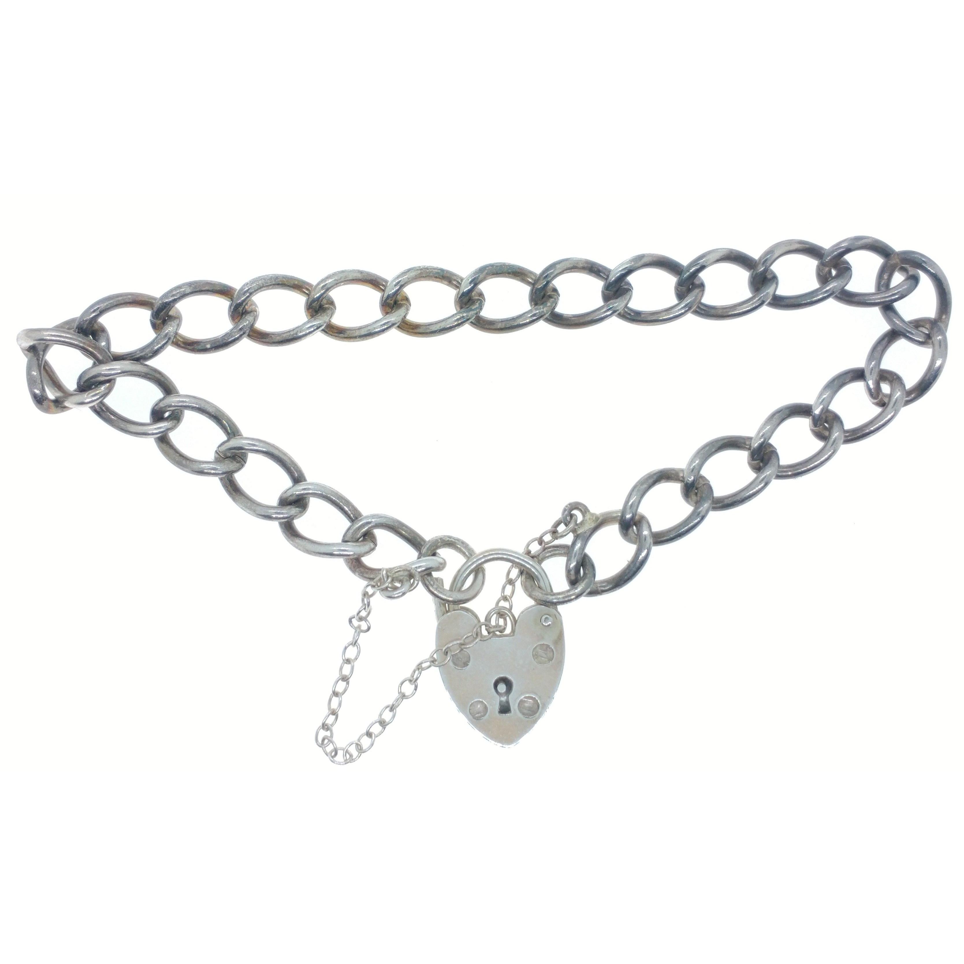 Birmingham hallmarked silver bracelet with heart shaped lock [20cm approx]
