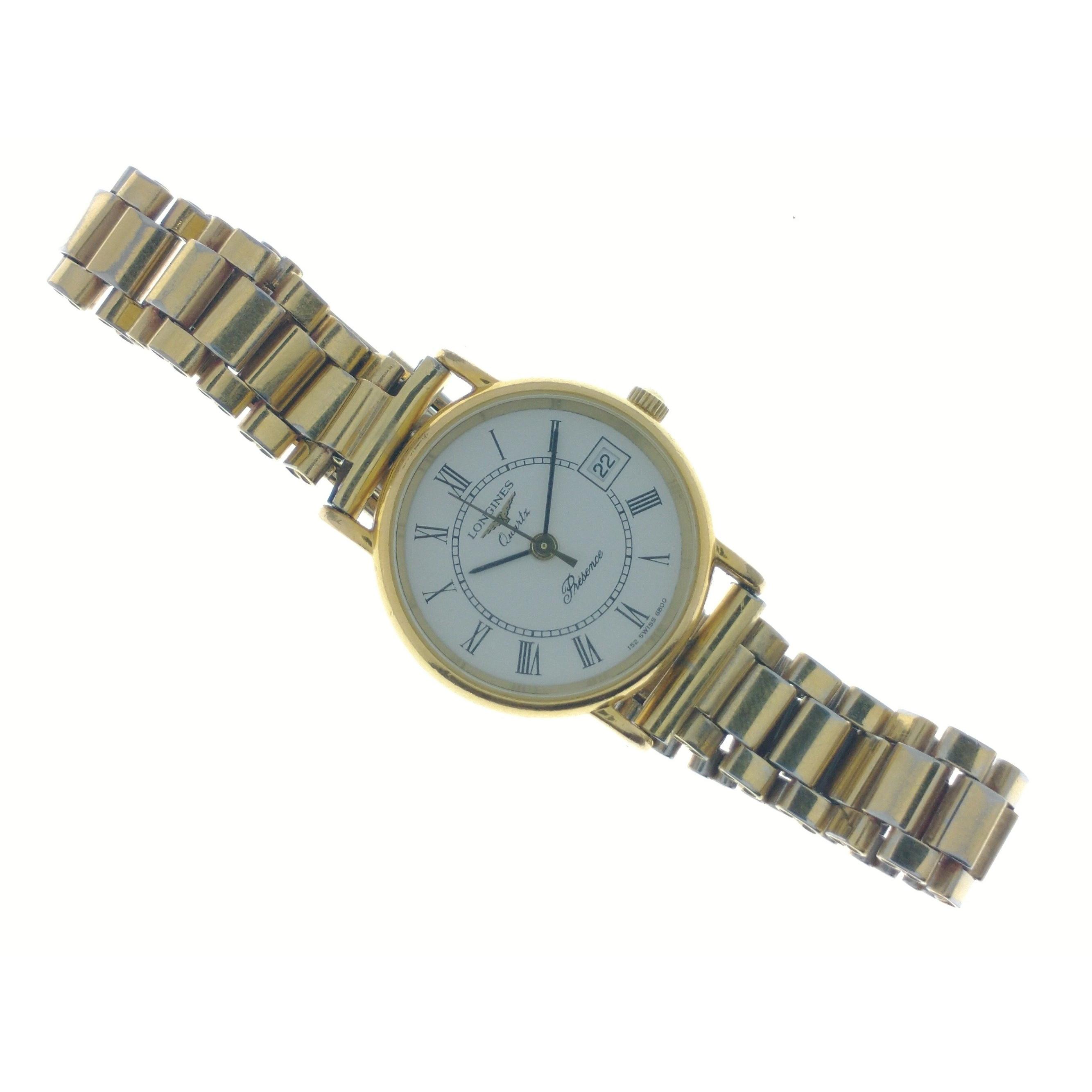 Longines presence ladies wrist watch with stainless steel back and Roman numerals and date dial