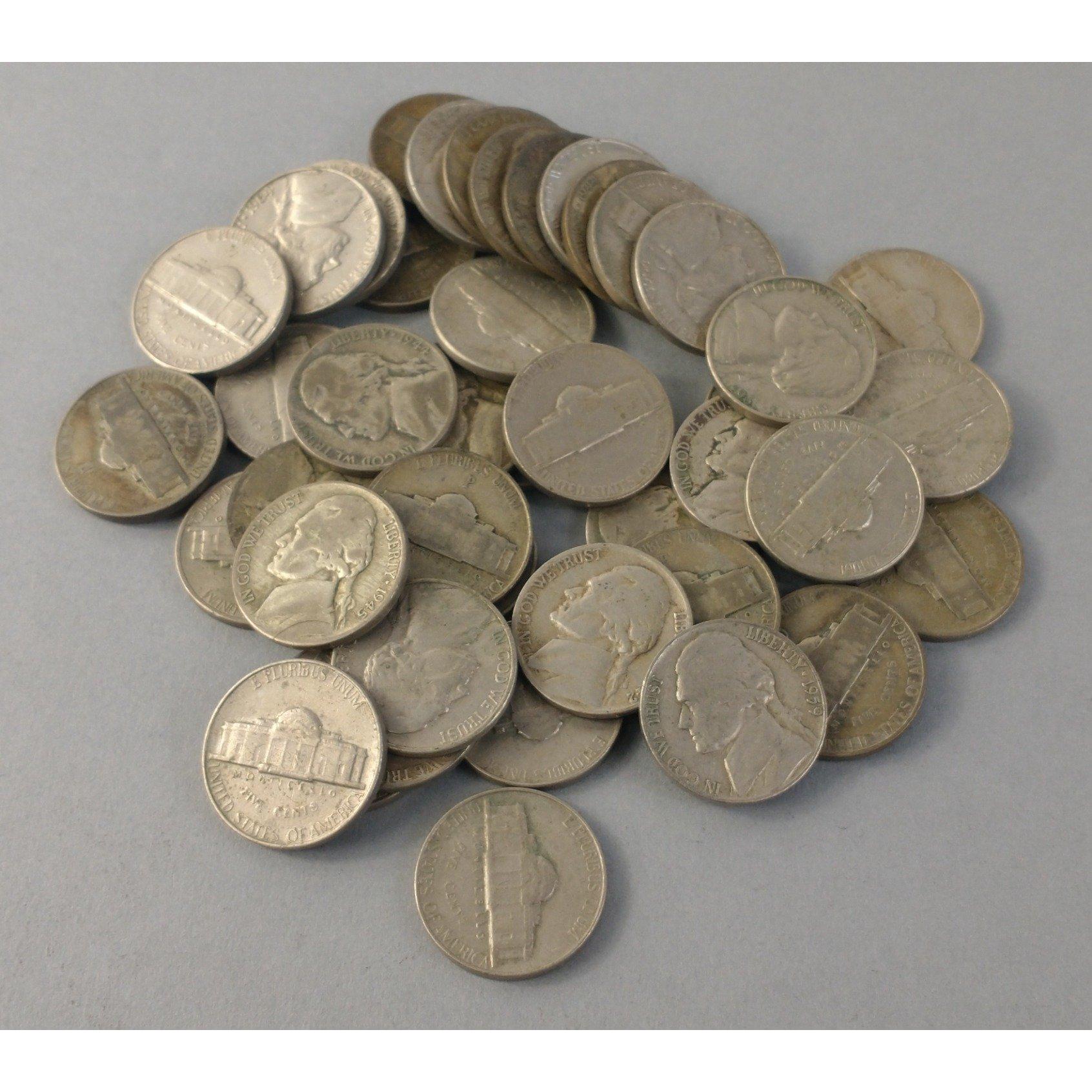 A selection of UNITED STATES Five Cents Jefferson Nickels in various grades but most with wear. All 1930s / 1940s / 1950s. Total gross weight 210g approx.