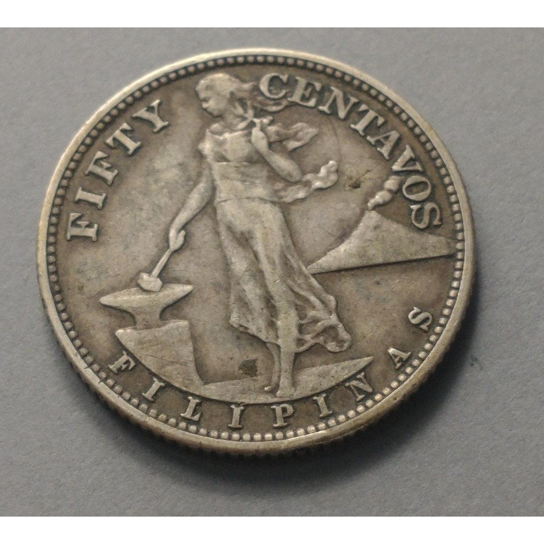 An unusual coin of numismatic interest. A 1944 PHILIPPINES silver 50 centavos coin. Nice coin with wear to high spots but a very collectible grade.