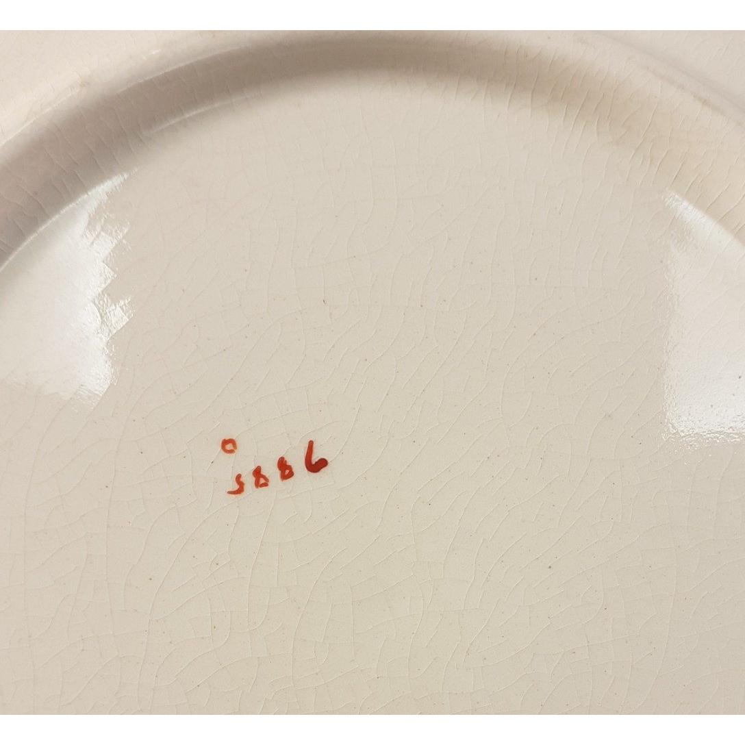 One large antique 40cm serving tray and 3 beautifully decorated gilt edged plates each 23cm dia with bird of paradise and floral design. One small crack noted and some crazingApprox 4 pieces