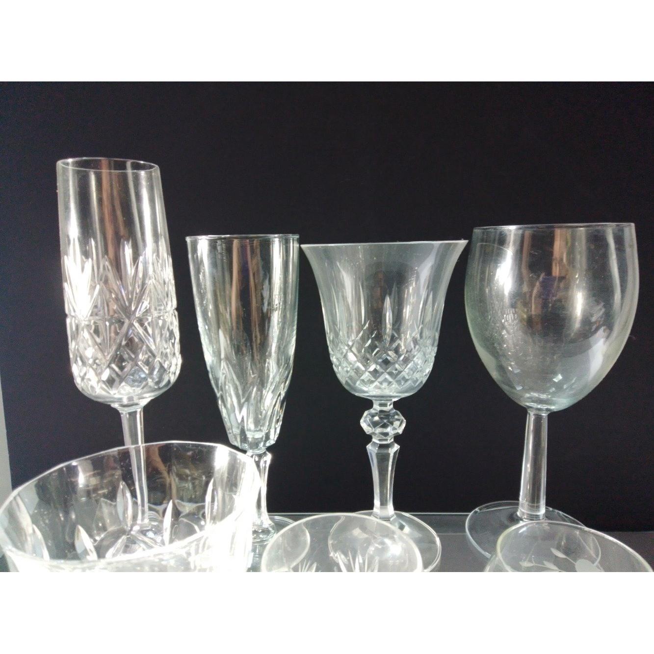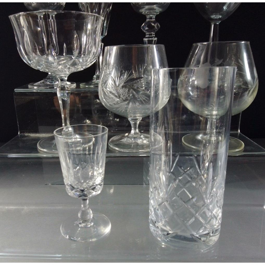 XMAS GLASSES FOR THE TABLE - four brandy glasses, 2 with BOHEMIA labels, 2 stamped FRANCE, 6 crystal champagne saucers, 2 hi-ball glasses, 8 large wine glasses, etc