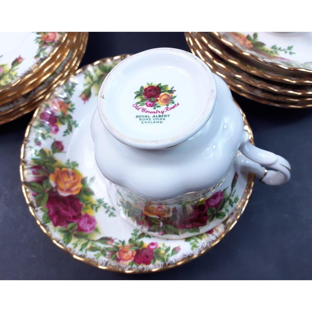 A ROYAL ALBERT Old Country Roses tea service comprising 6 cups, 6 saucers, 6 plates (16cm), 6 plates (21cm), 1 sandwich dish 23cm dia, 1 milk jug, 1 lidded sugar bowl and 1 open bowl (11cm dia). All in excellent order with no chips, cracks etc