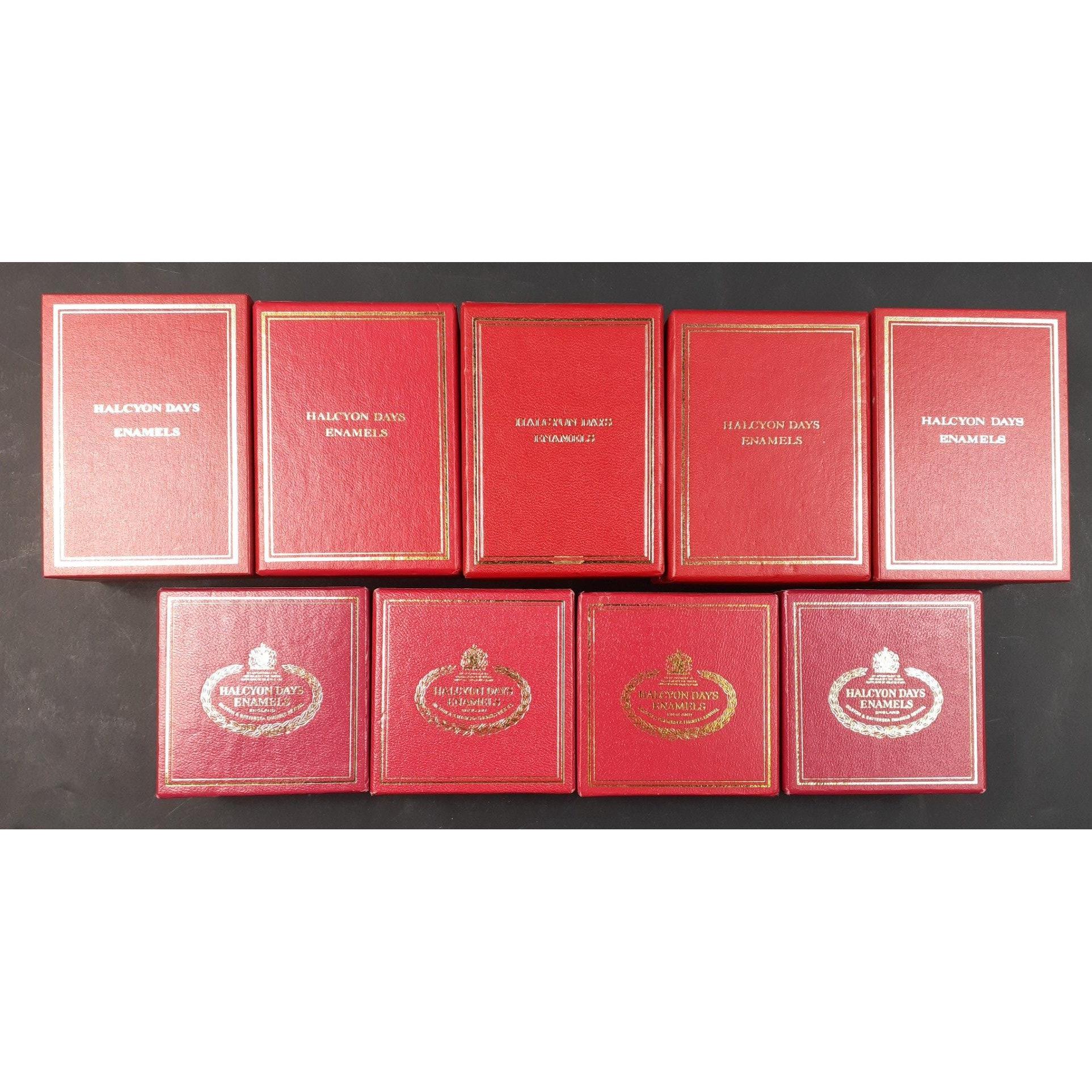 A lovely little collection on nine HALCYON DAYS pill boxes in nice presentation boxes, All in good condition.