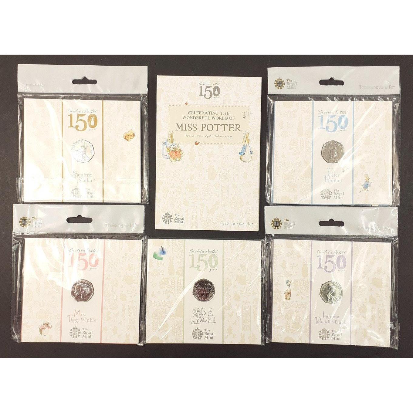 ROYAL MINT. Beatrix Potter 150 years 50p collection of five coins in sealed packs with the holder pack. Lot also icludes four 1981 Royal Wedding commemorative stamp sets.