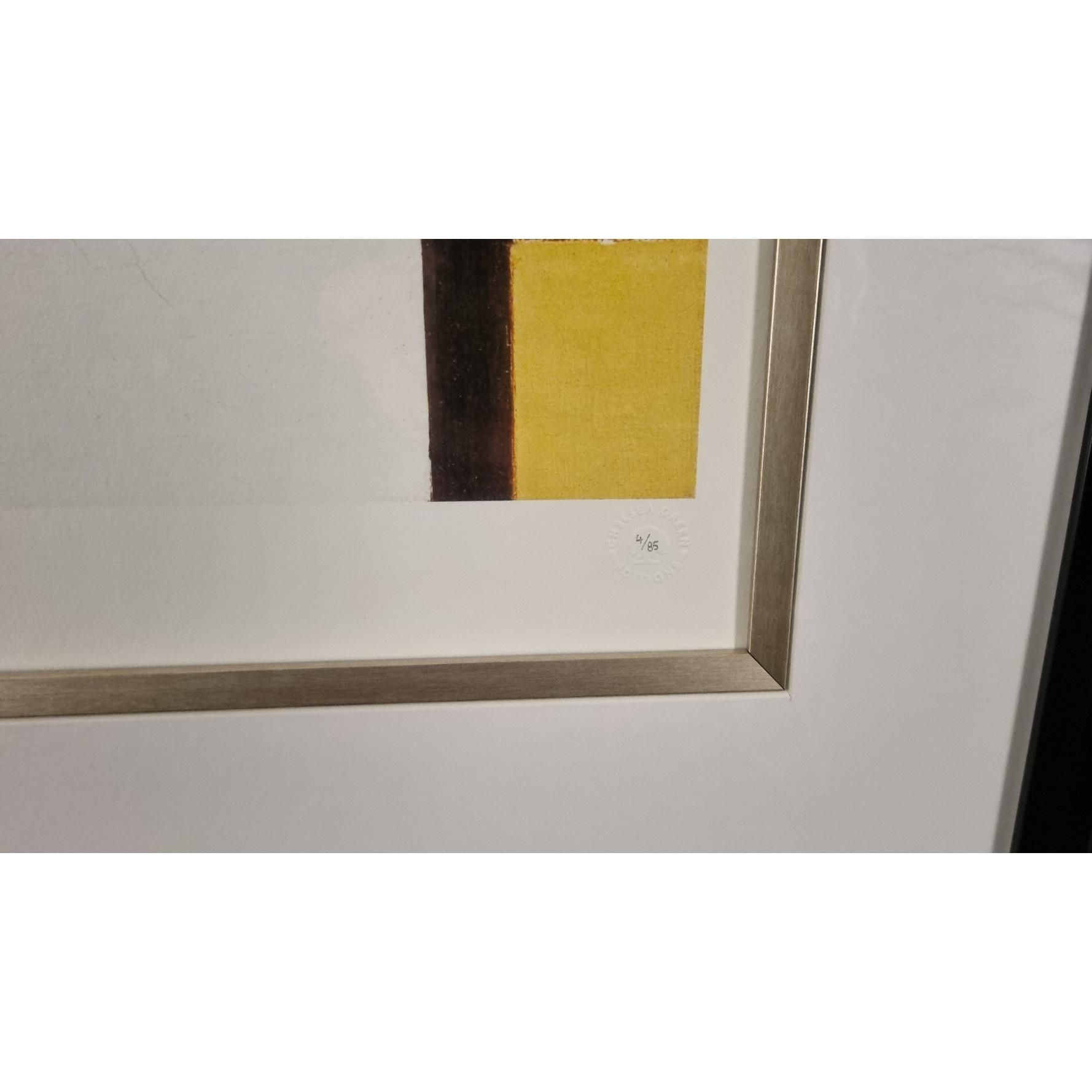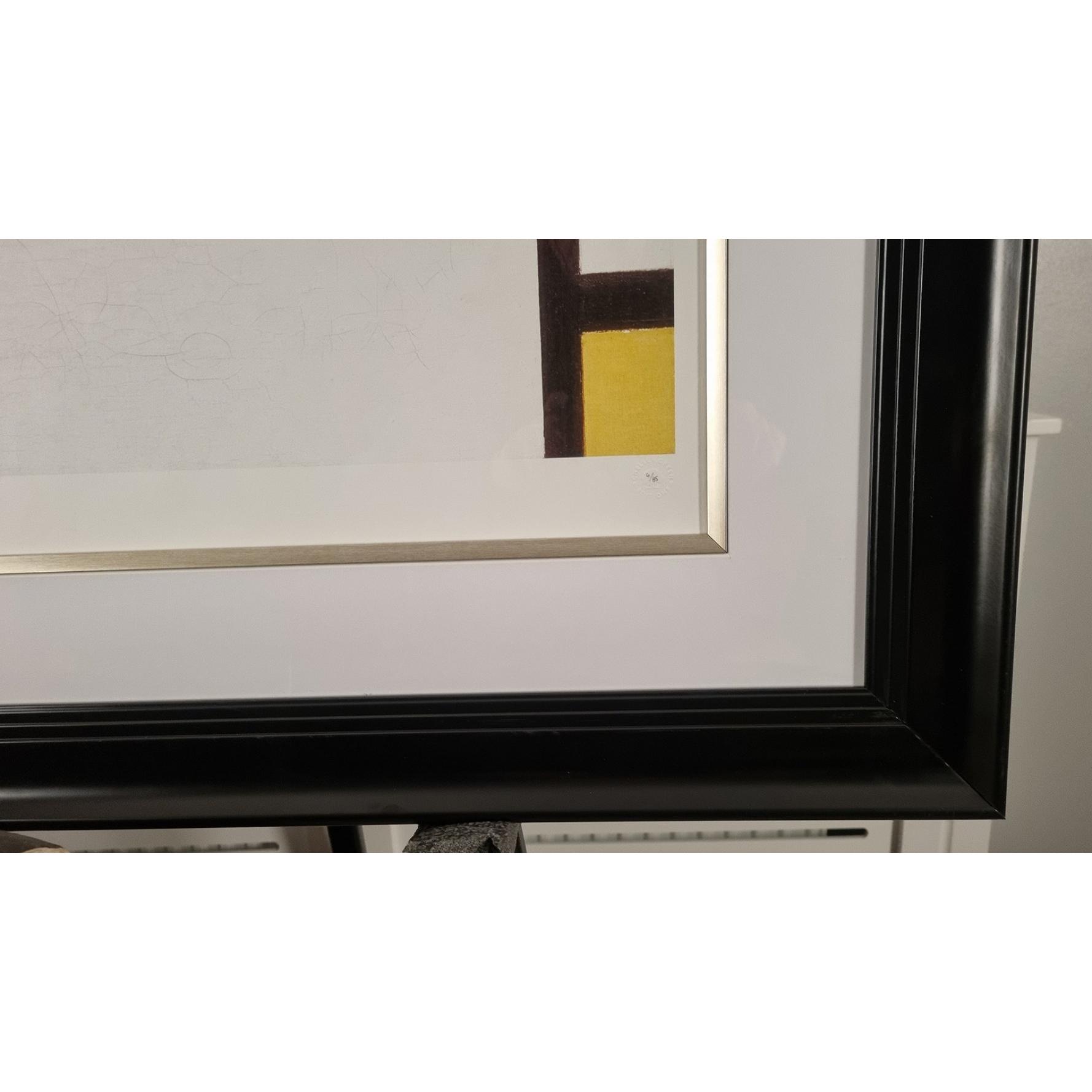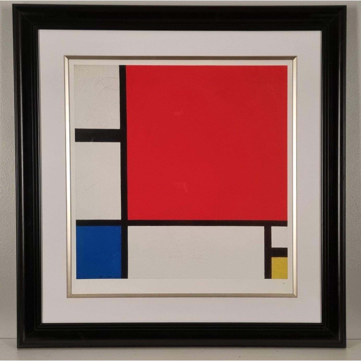 A limited edition print by PIET MONDRIAN (1872-1944) titled "Composition II in red, blue and yellow, 1930" This actual print was printed in London and is one from the published edition which was strictly limited to 85 copies Worldwide (numbered in the publishers frank). It will be supplied with a replacement valuation for £1800 (free of charge). It will be accompanied with a certificate of authenticity which verifies this is number of the edition. It has also signed by the Master Printer. It has been printed to the highest standard with lightfast inks onto acid-free calcium carbonate-buffered stock, mould-made from 100% cotton. It has been professionally mounted and framed. Mondrian was born in Holland in 1872 and was determined to become a painter from a young age. He qualified with a teaching degree in 1892, but enrolled for painting lessons, before moving to Amsterdam and registering at the Rijksacademie. Mondrian became a member of the art society Kunstliefde "Art Lovers" in Utrecht, where his first paintings were exhibited in 1893. He experimented with many different styles including naturalistic, impressionist and painting many landscapes of his native country. In 1911 he moved to Paris and the influence of Cubism, as evidenced by Picasso and Braque, started to appear almost immediately in his work. He spent the duration of the First World War back in Holland and continued his journey towards abstraction. After the War had finished Mondrian returned to France. He then moved to London in 1938 but relocated to New York just two years later in 1940, where he remained until his death. Mondrian is well known for his contribution to the development of modern abstract art. He strove to portray an extreme formal purity through his combination of simplistic straight lines and bold primary colours. The Image: Mondrian spent the period 1914-1918 (World War I) back at his home in Holland and during this time, he decided to work on an abstract art form which was later classified as Neoplastic style. This work was depicted by lighter colours, simplified colour selection and forms that were balanced in their composition. This work is a result of Mondrian joining the abstraction-creation line which was open to new styles, new techniques and at this time Mondrian began to be fascinated with the idea of the line and dismantling the very definition of painting. He argued that drawing and draughtsmanship which were exemplified in the line, had always lain at the heart of painting from the Renaissance artists to the Impressionists to the Modernists and no one had ever thought to challenge that.. H: 96cm W: 93cm D: 4cm