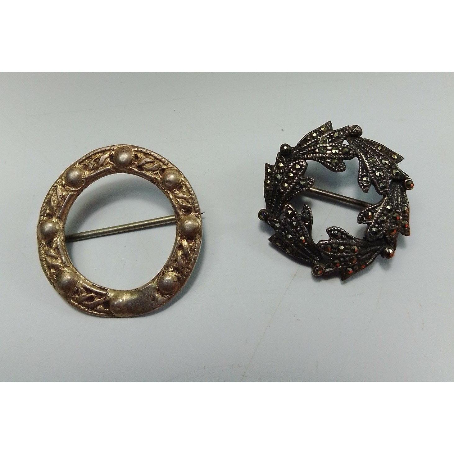 A silver brooch with worn hallmark, 25mm width approx, weight 4.14g approx, also a marcasite brooch 20mm widthApprox 2 pieces