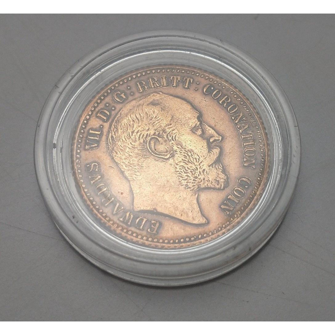 An encased 1911 KING EDWARD VII brass Coronation coin