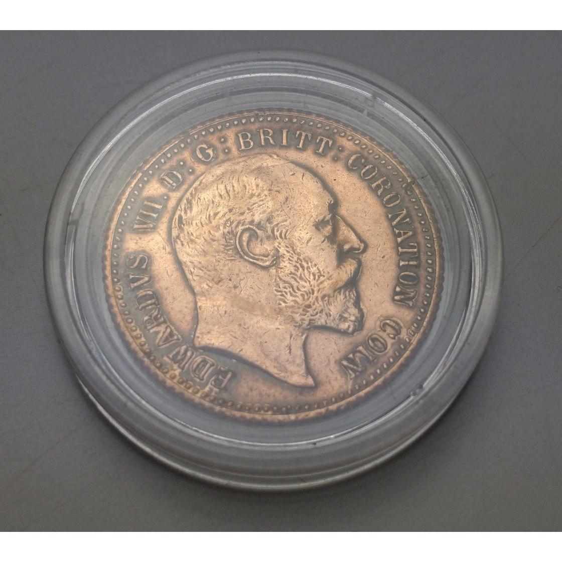 An encased KING EDWARD VII 1911 brass Coronation Coin.