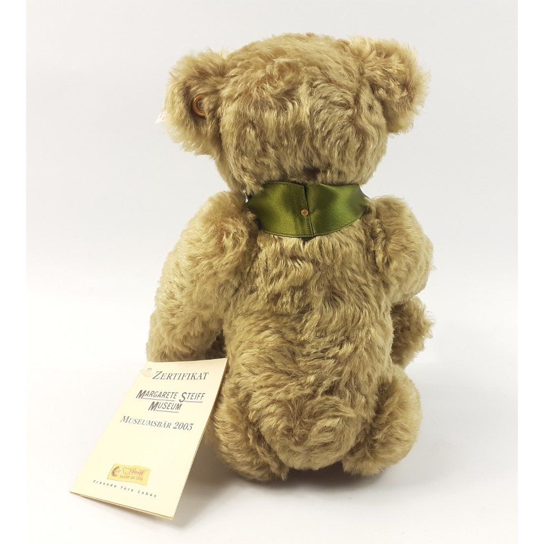 A STEIFF museum mohair bear with Margarete Steiff porcelain medallion on olive green ribbon, reference 671456, stands 30cm high with certificate number 00032 and labelsApprox 1 pieces