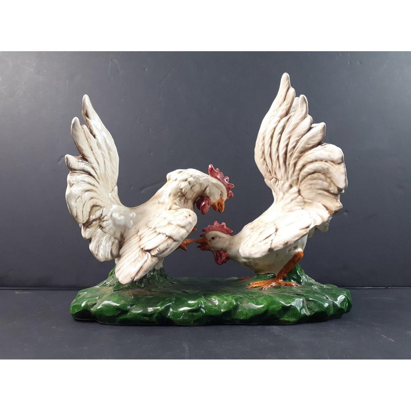 A RARE! BASSONA group of 2 fighting cockerels standing 22cm tall and 30cm across at base approx. No visible damageApprox 1 pieces