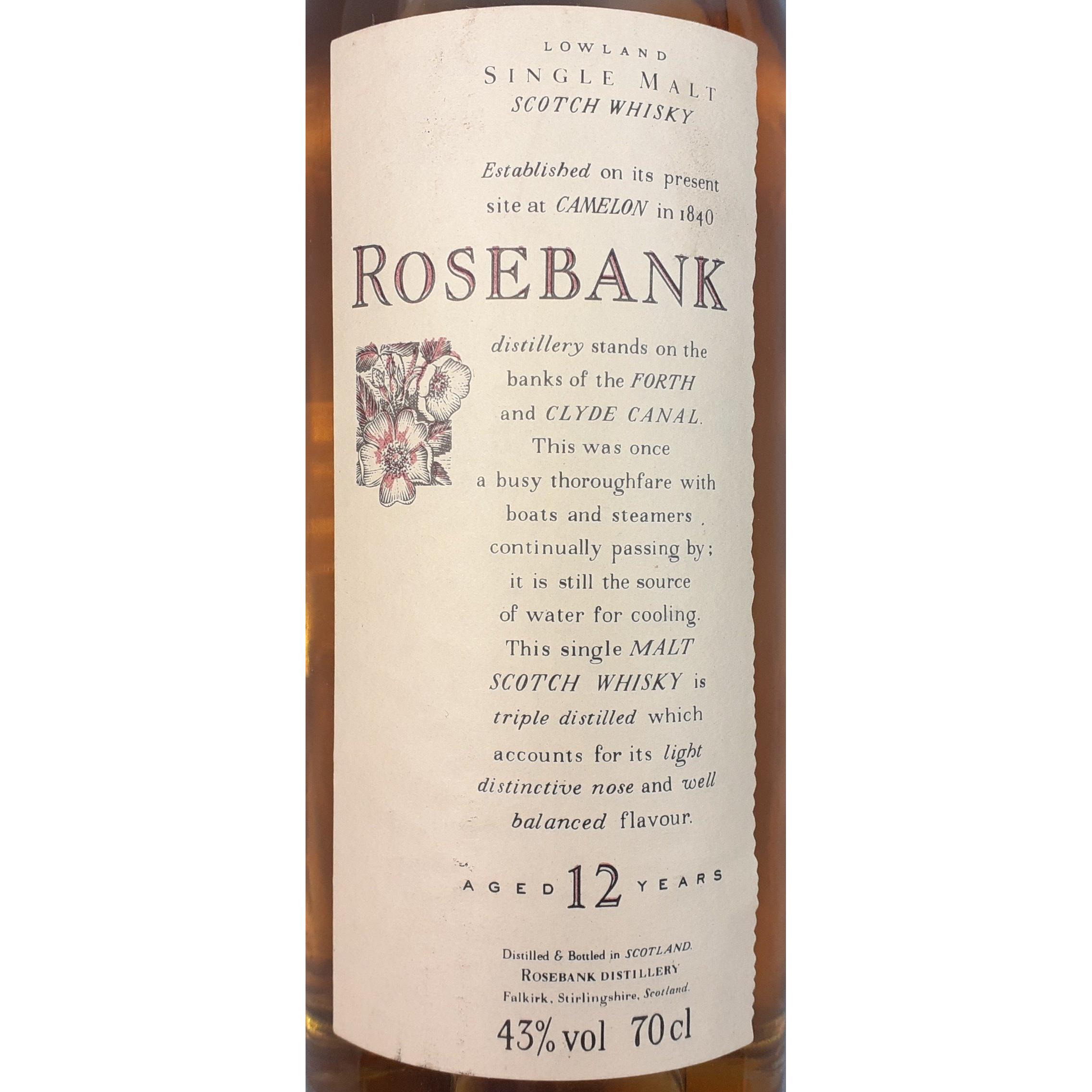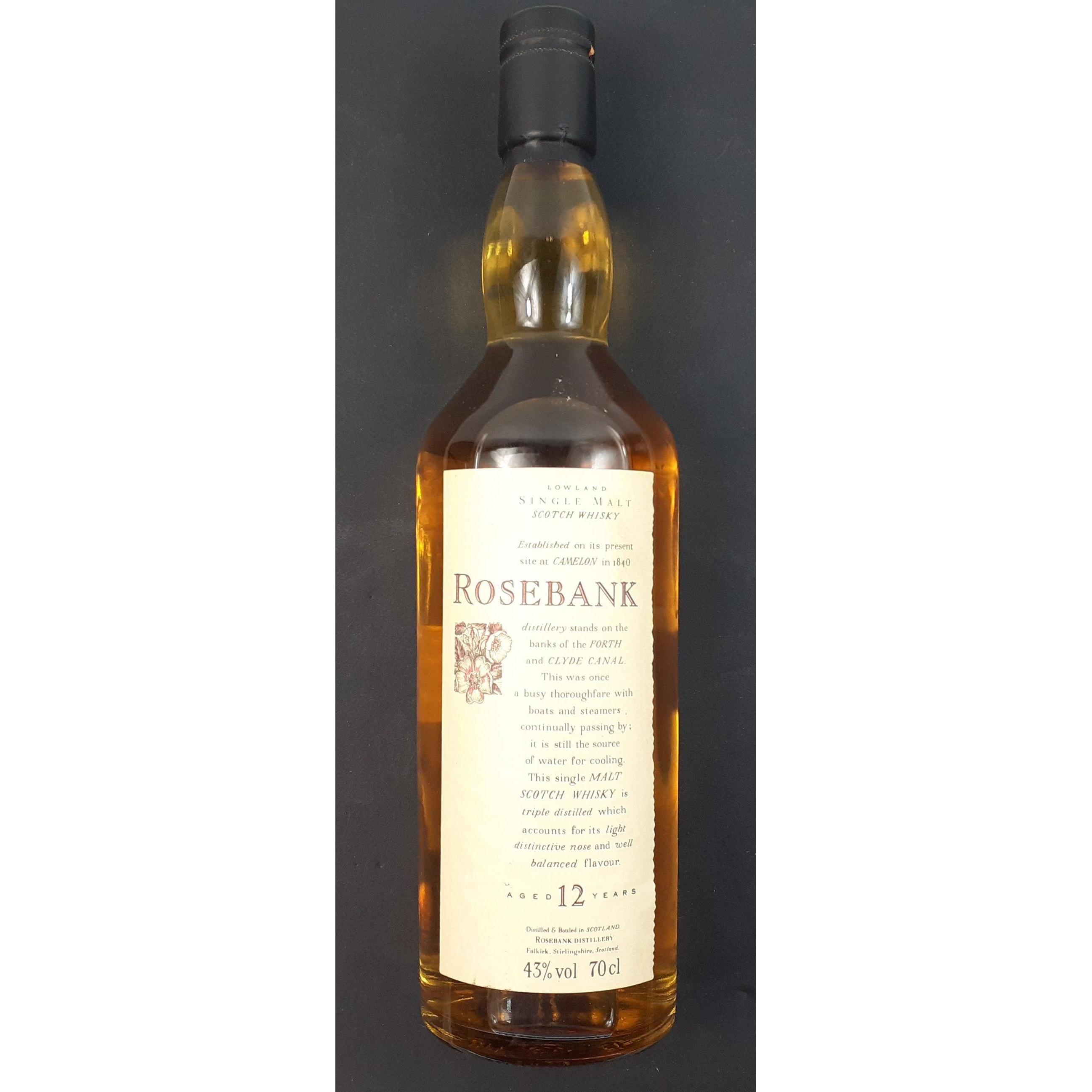 A 70cl bottle of ROSEBANK single malt whisky aged 12 years, gifted at Christmas 2008 with an admonition not to open the bottle, whisky level 20.5cm from base, label intact