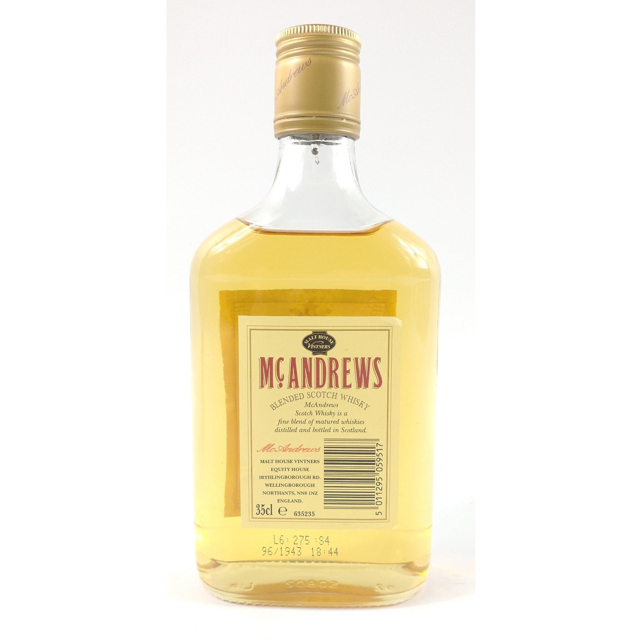 A half bottle 35cl of MCANDREWS blended Scotch Whisky with also a 5cl miniature 10 year old GLENMORANGIE. The item is sold as described and we do not accept liability for the state of the closure or the taste of the contents.
