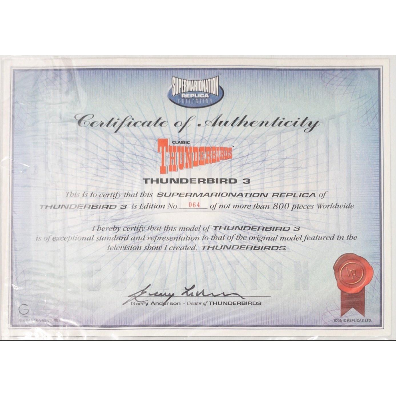 RARE limited edition number 64 of 800 of THUNDERBIRD 3 SUPERMARIONATION by GERRY ANDERSON complete with signed certificate of authenticity
