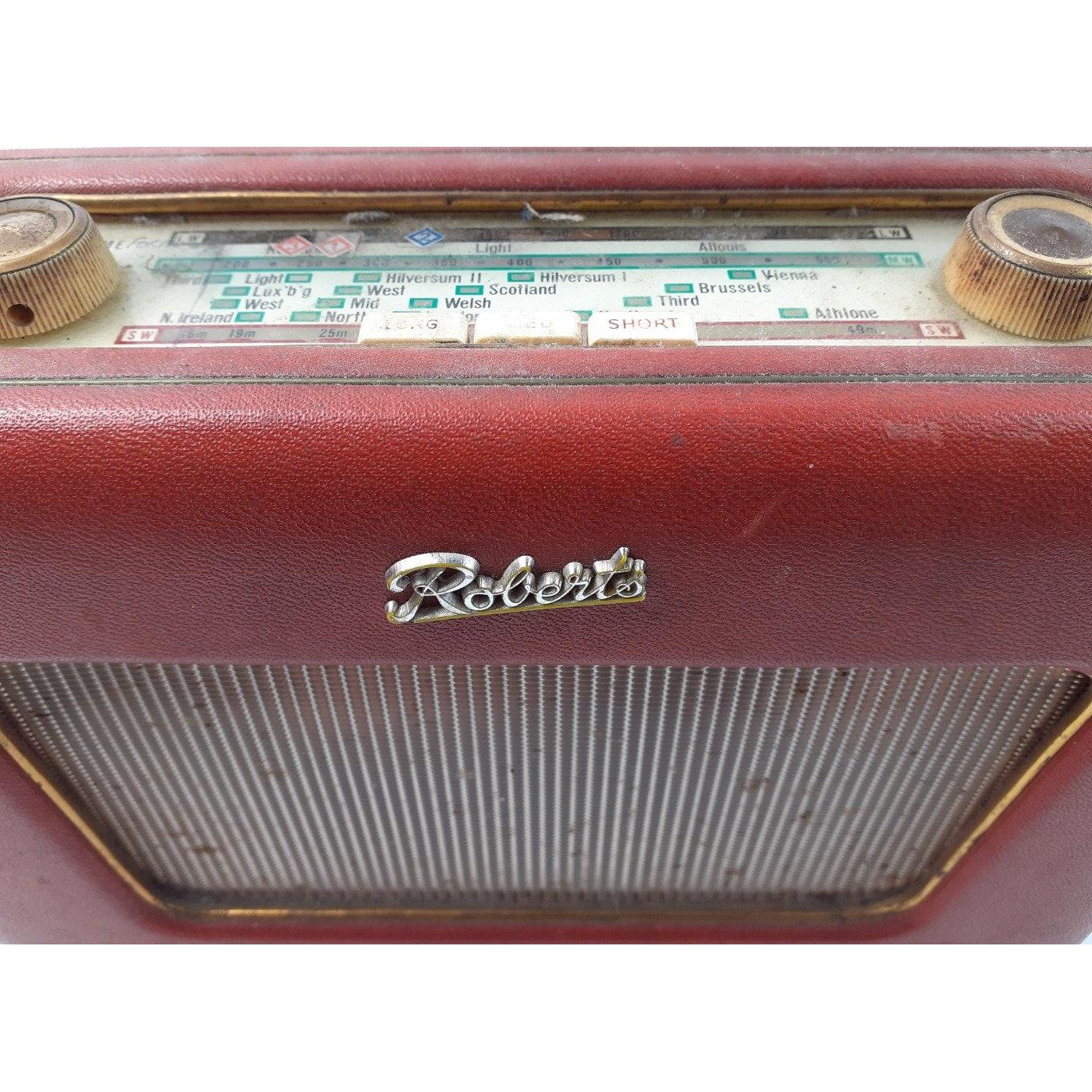 A vintage ROBERTS radio model R500 in plush red strap intact, battery terminals cleanApprox 1 pieces