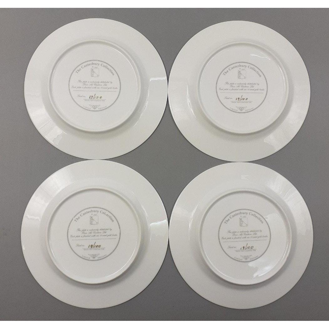 Four super CANTERBURY COLLECTION decorative limited edition plates of PEEBLES scenes to include Neidpath Castle, Tweed Bridge, The Hydro, General View. Each plate 21cm across. Each plate is in excellent order.