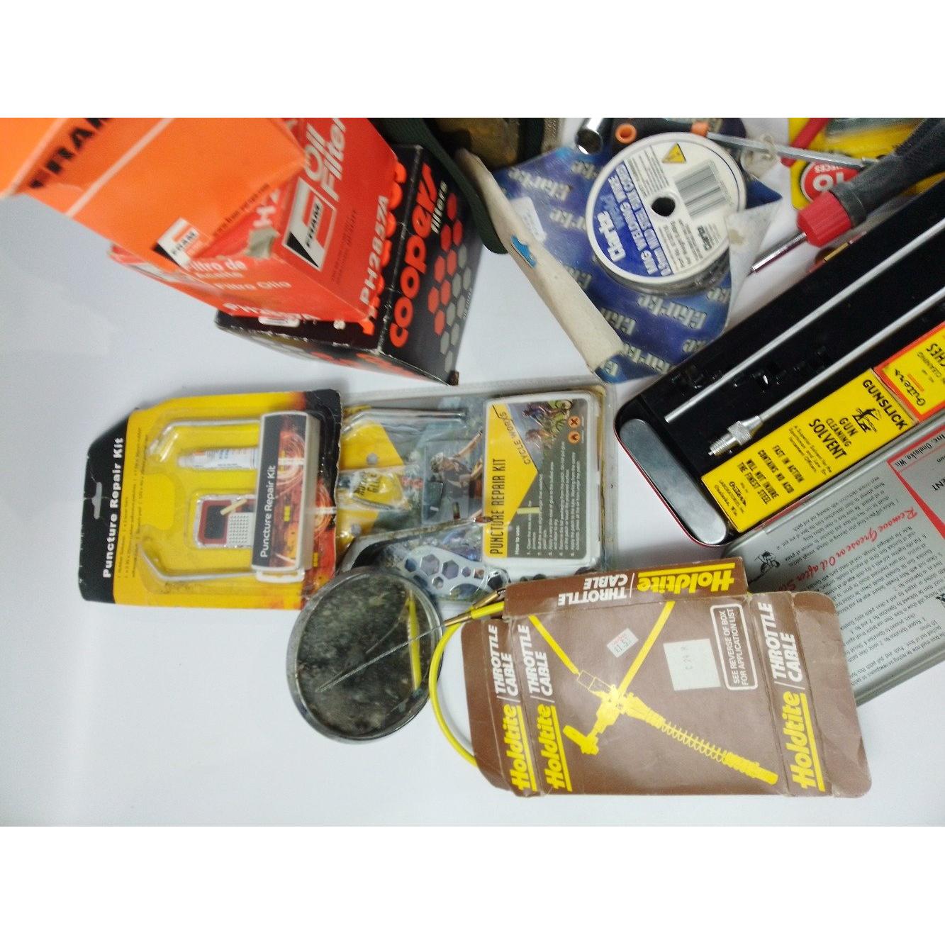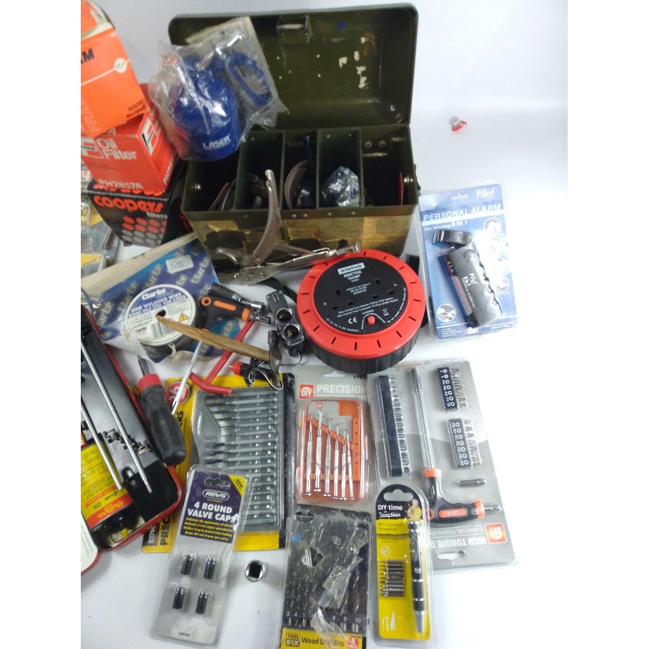 A box of tools to include some screwdriver and torque sets, OUTRES rifle cleaning kit, an extension cable and other pieces. A great lot.