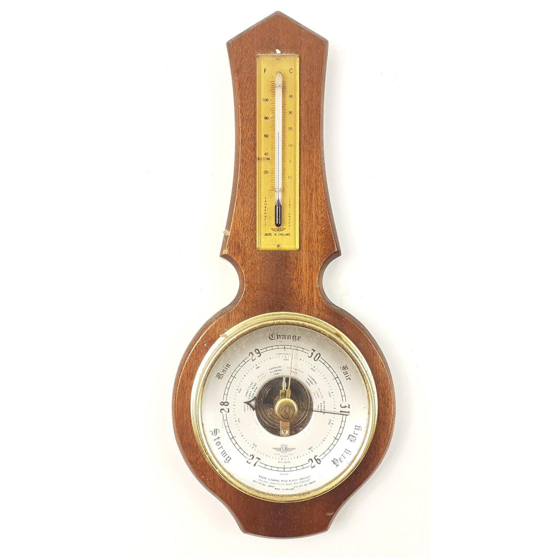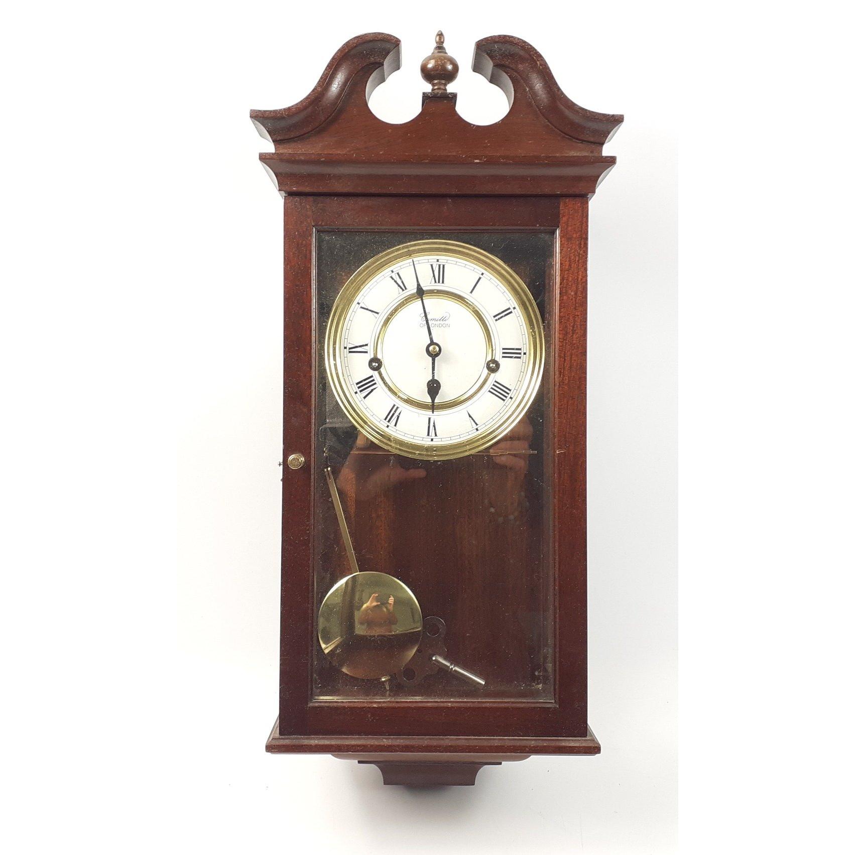 A small banjo barometer and a modern COMITTI pendulum wall clock, 50cm high
