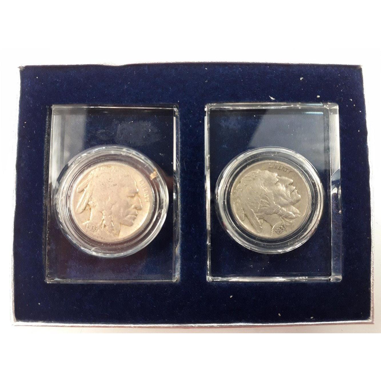 United States coins nicely presented in glass holders in presentation boxes. Buffalo / Indian Head Nickels x 10, 1935 x 2, 1936 x 3 , 1937 x5, Ten coins in total. All coins have wearApprox 10 pieces