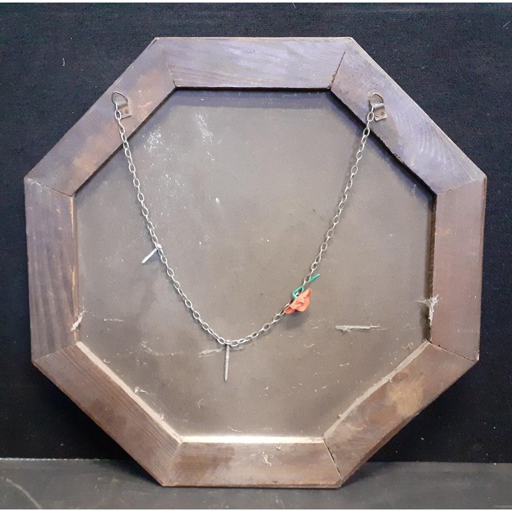 An octagonal wall mirror with bevelled edges and wooden frame 62cm dia approx Approx 1 pieces