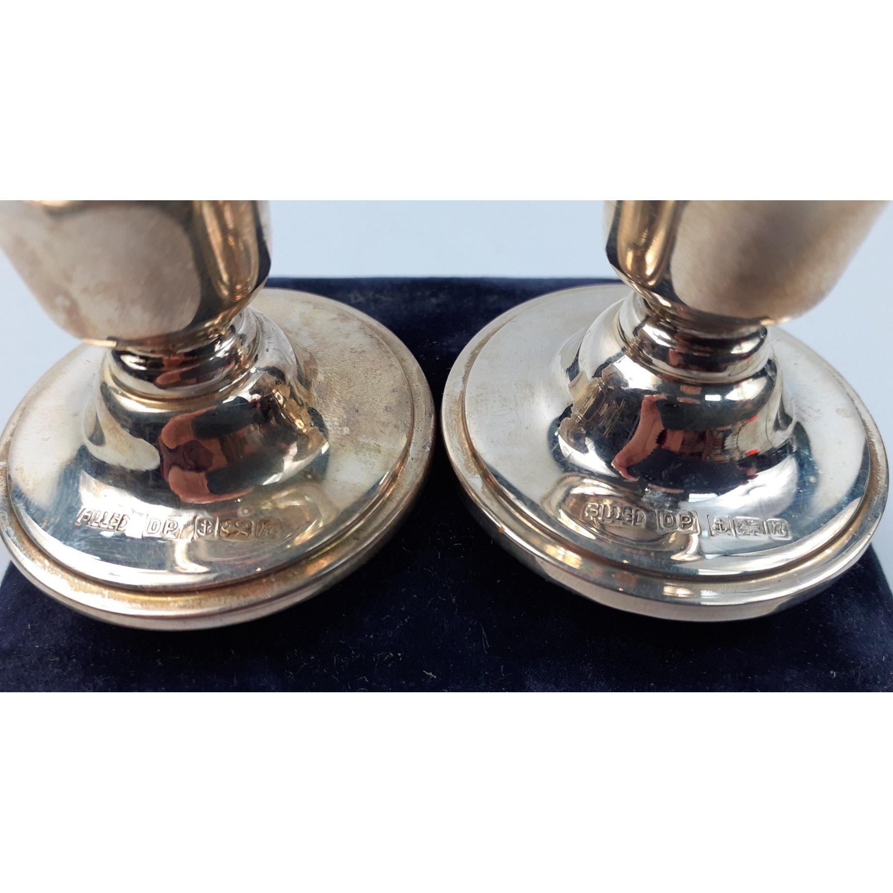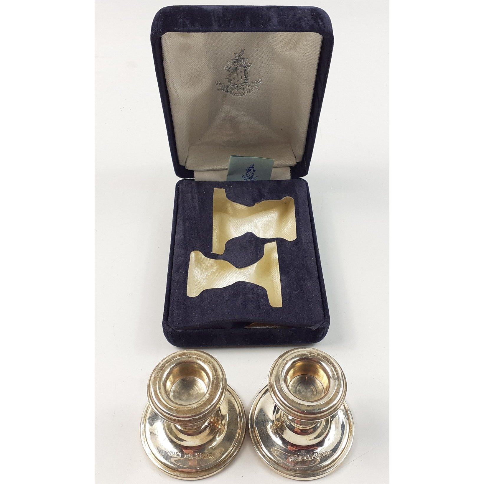 A pretty pair of weighted silver candlesticks in presentation box, hallmarked for Birmingham 1991. Gross weight 58g approx. Each stands 4cm high approxApprox 1 pieces