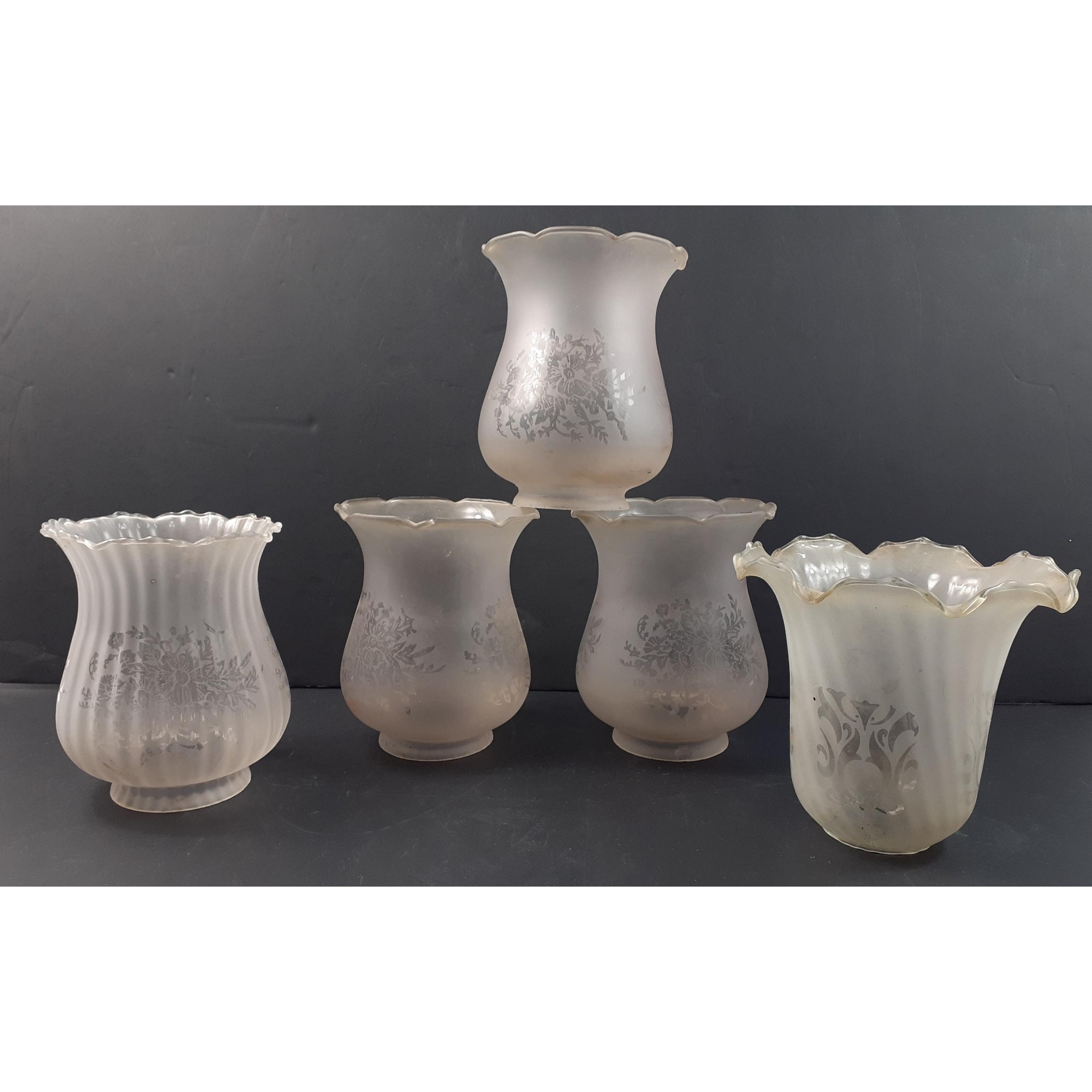 Five assorted glass lampshades, 3 of one design and two odds each approx 15cm highApprox 5 pieces