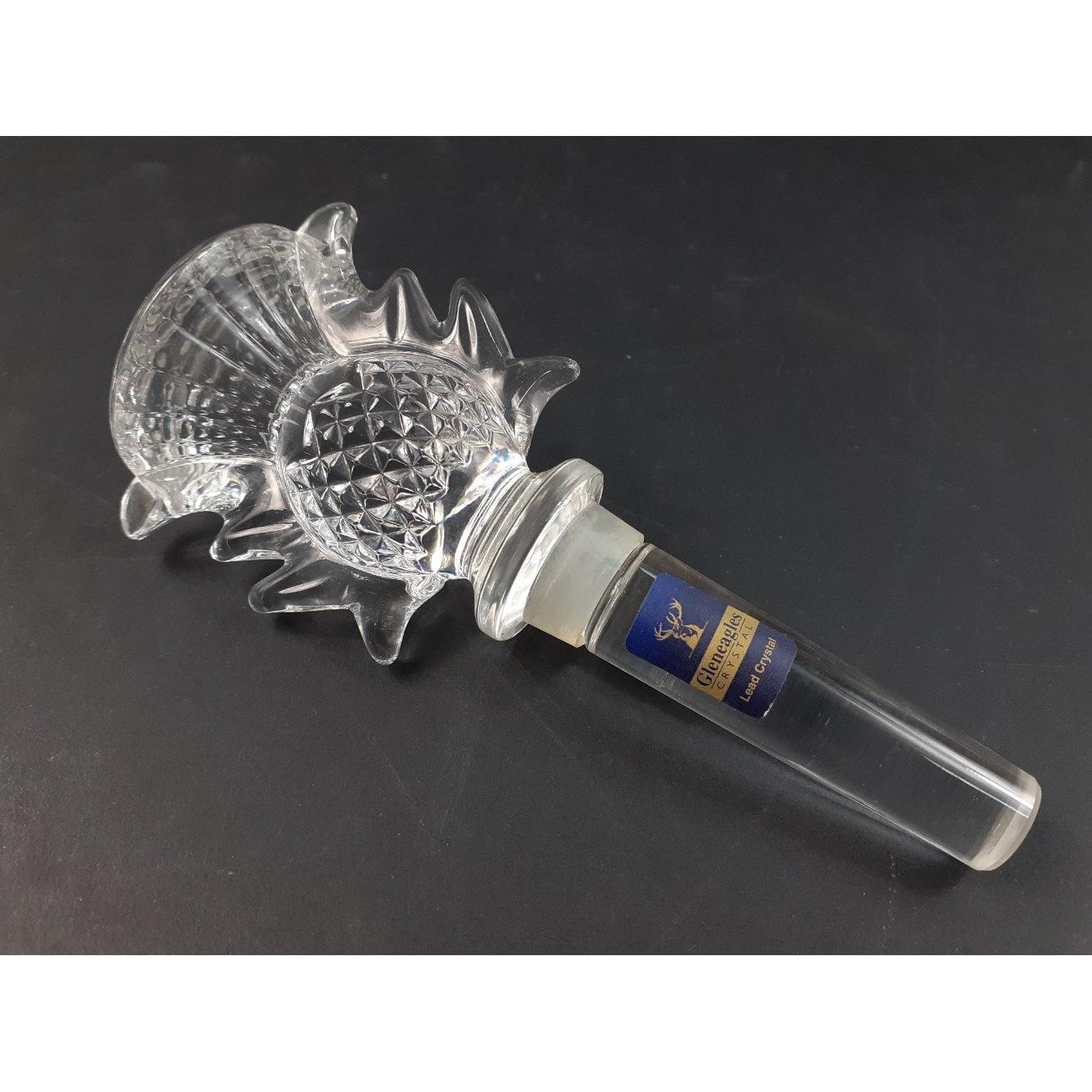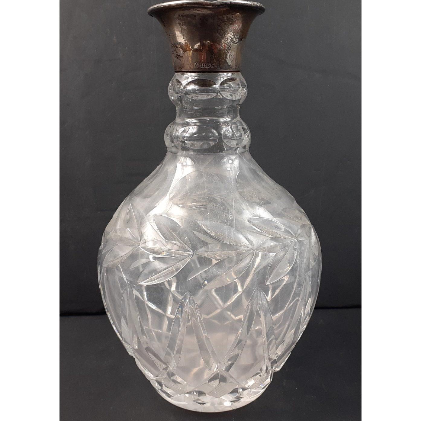 A decanter with silver collar, hallmarked Birmingham 1975 standing 22cm (without stopper), a signed Edinburgh crystal whisky decanter 20cm high and a Gleneagles crystal bottle stopperApprox 3 pieces