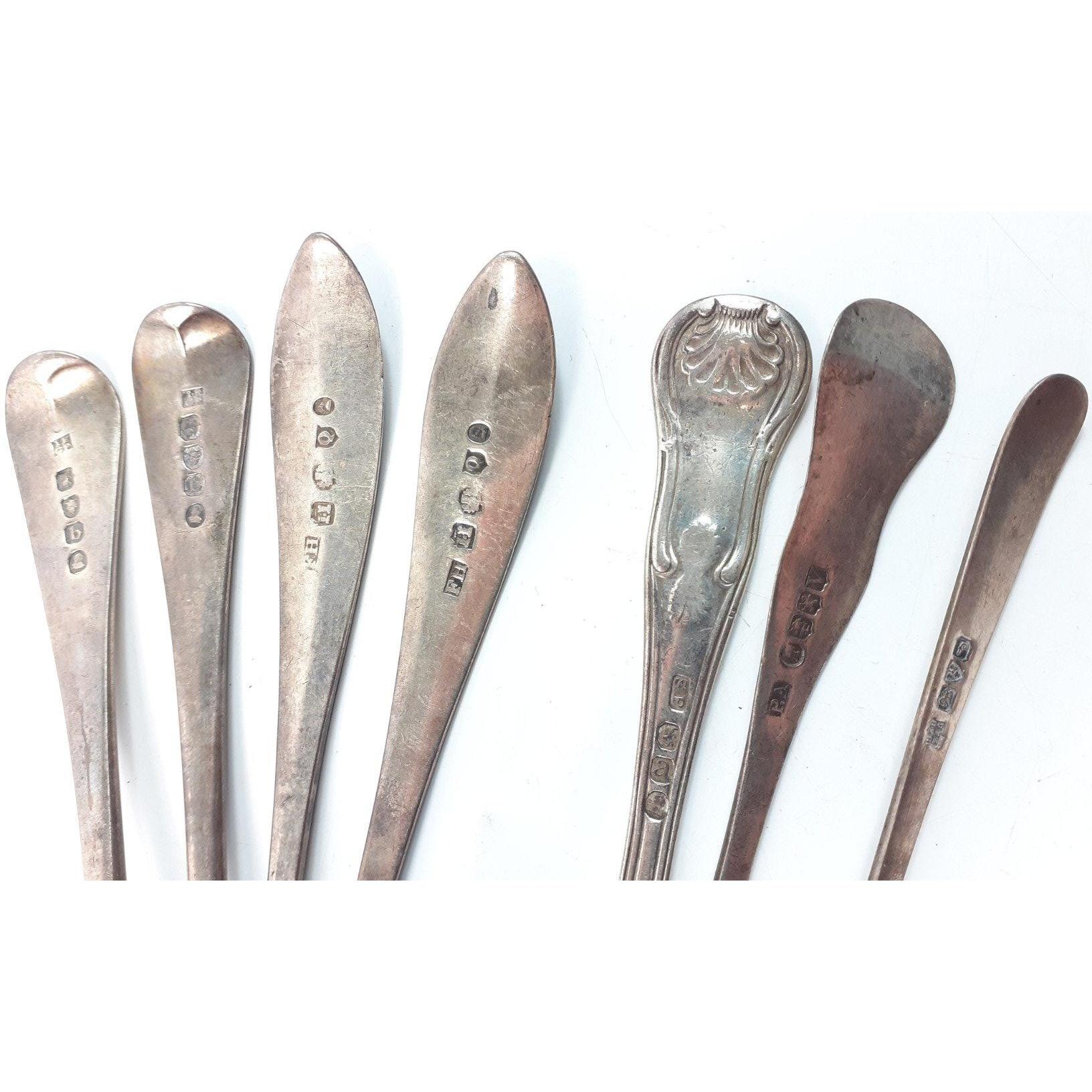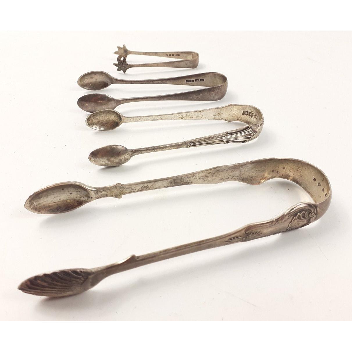 A collection of hallmarked silver cutlery to include sugar tongs and spoons, weight 285g approx