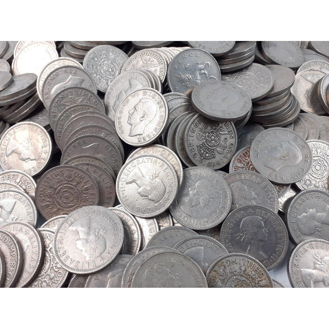 A large quantity of post-1947 cupro-nickel obsolete coinage mainly comprising two shillings. Total gross weight 6170g approx