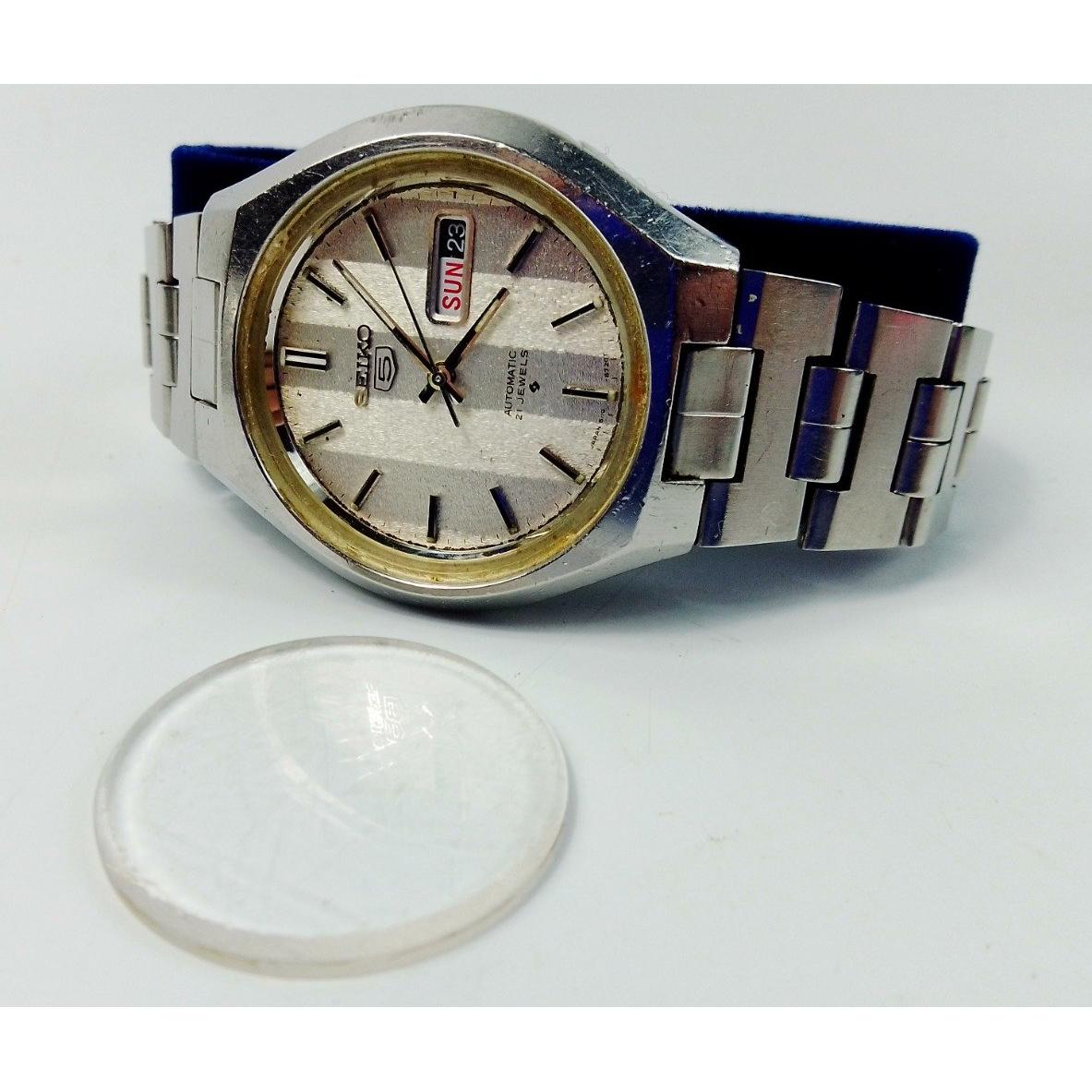 A lovely vintage SEIKO 5 automatic 21 jewel Japanese gent's wristwatch model 6119-8720T in original presentation box. Glass crystal is scratched and loose, otherwise original bracelet and case in good order. Not running at time of valuation.