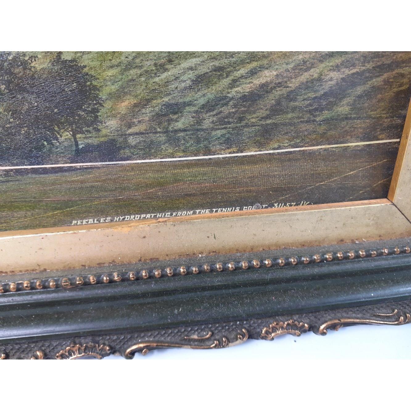 THE AULD HYDRO. A super older print of the gothic pile that was the original PEEBLES HYDROPATHIC hotel burnt down 1905. Image taken from an original postcard with excellent definition. In an older painted wooden frame. Measure 37 x 28cm.