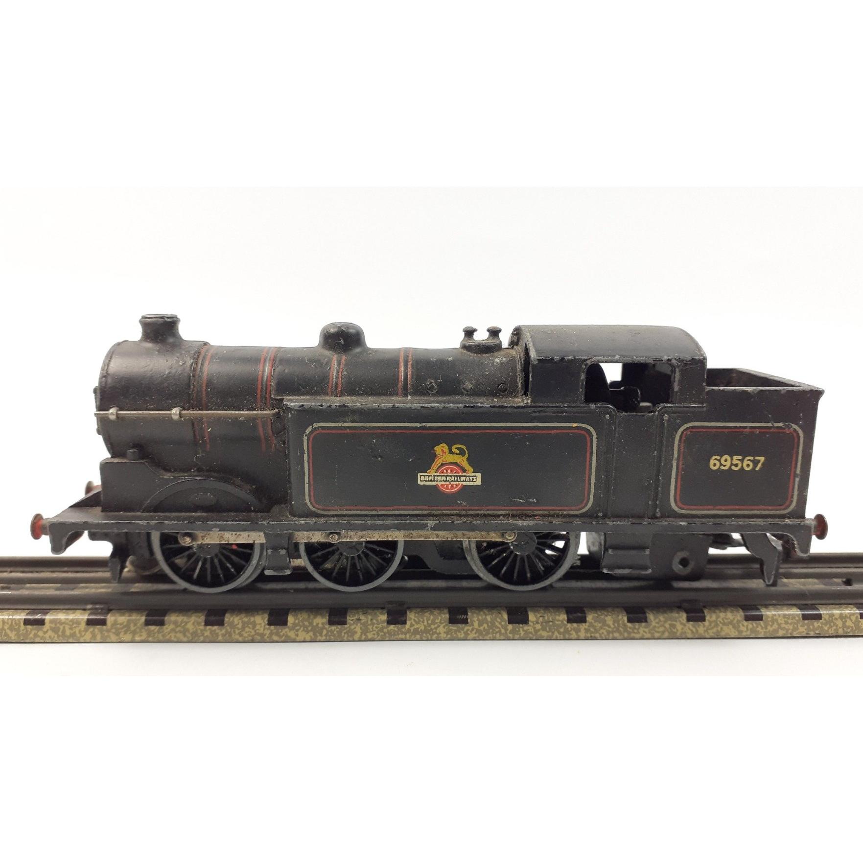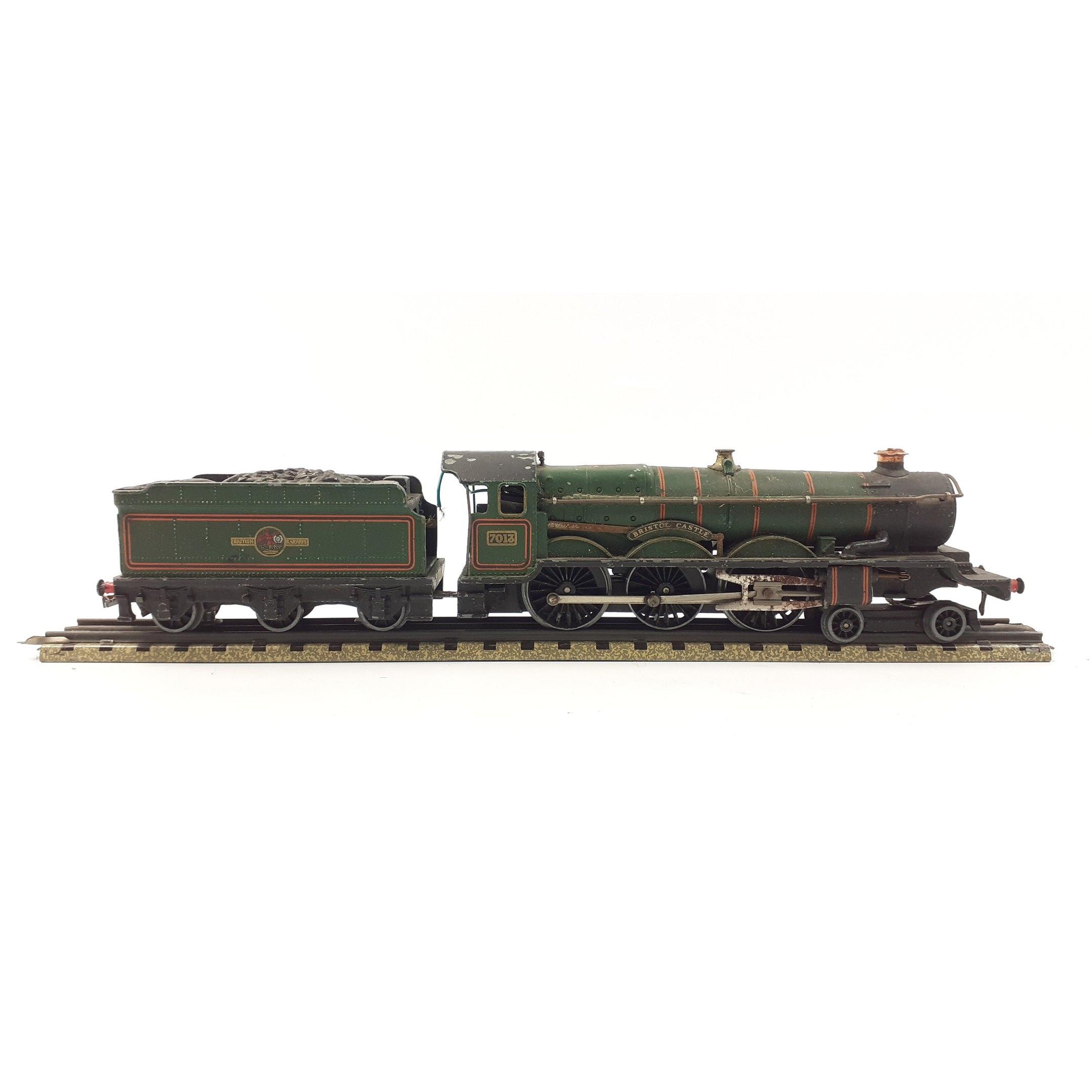 A super vintage MODEL RAILWAY OO HORNBY DUBLO locos, rolling stock and layout pieces. Includes steel bodied 69567 tank loco, 7013 BRISTOL CASTLE with tender, three pressed steel carriages and lots more. Includes a nice lot of Dublo triple rail solid track. Some great pieces, has been used but appears complete.