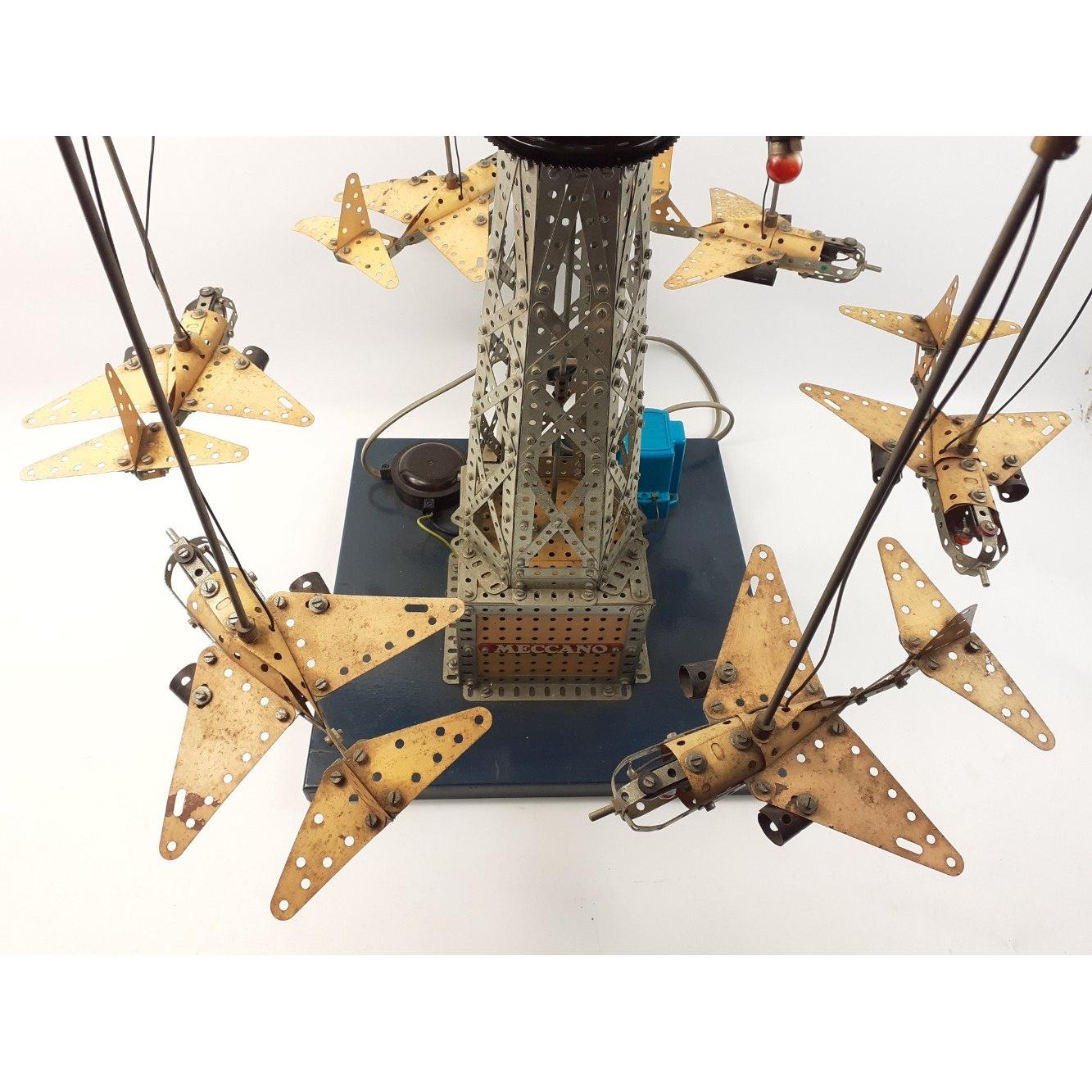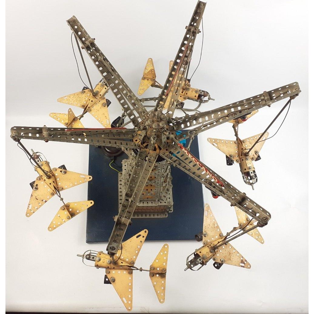 A large and impressive vintage original factory produced trade display model MECCANO jet aircraft carousel advertising piece originally from a Selkirk toy shop window. Recently rewired by the Repair Shop in Selkirk during the visit of King Charles who was greatly taken with the item.