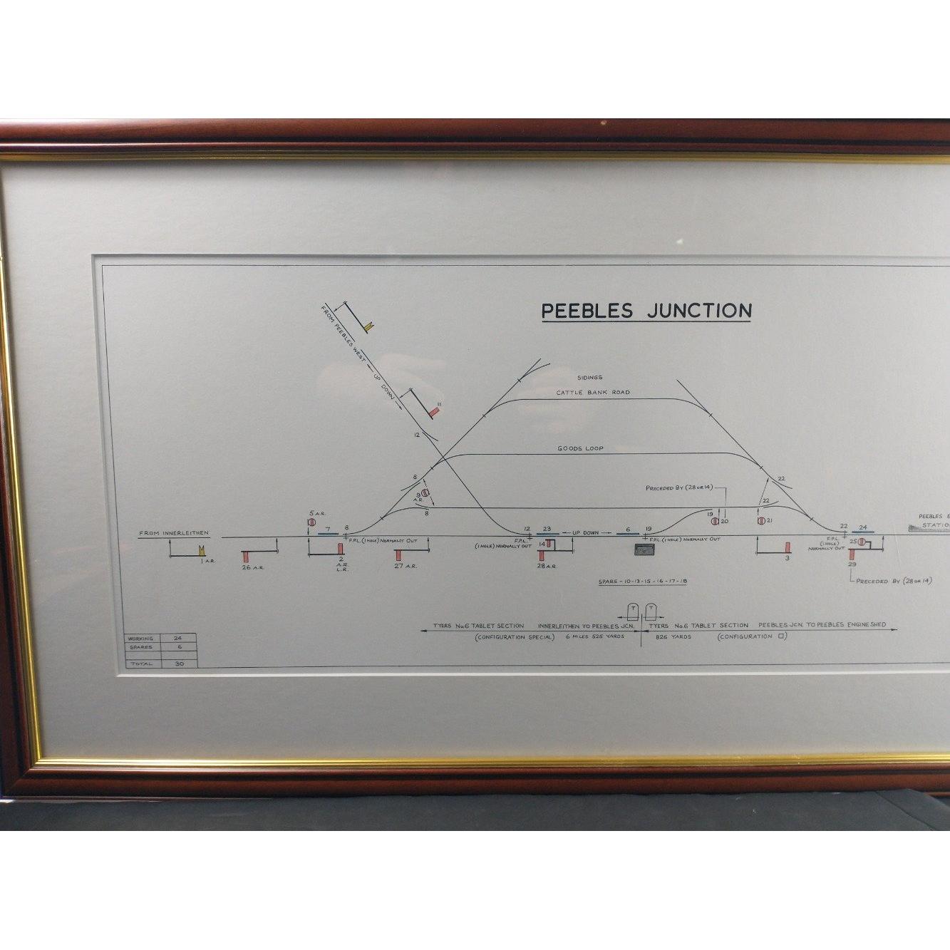 STUNNING! A superbly well framed line diagram of PEEBLES RAILWAY JUNCTION. 92cm x 47cm. Interesting and displays superbly! Dated 1960. Shows line to Innerleithen with branch line off to the Caledonian Station.