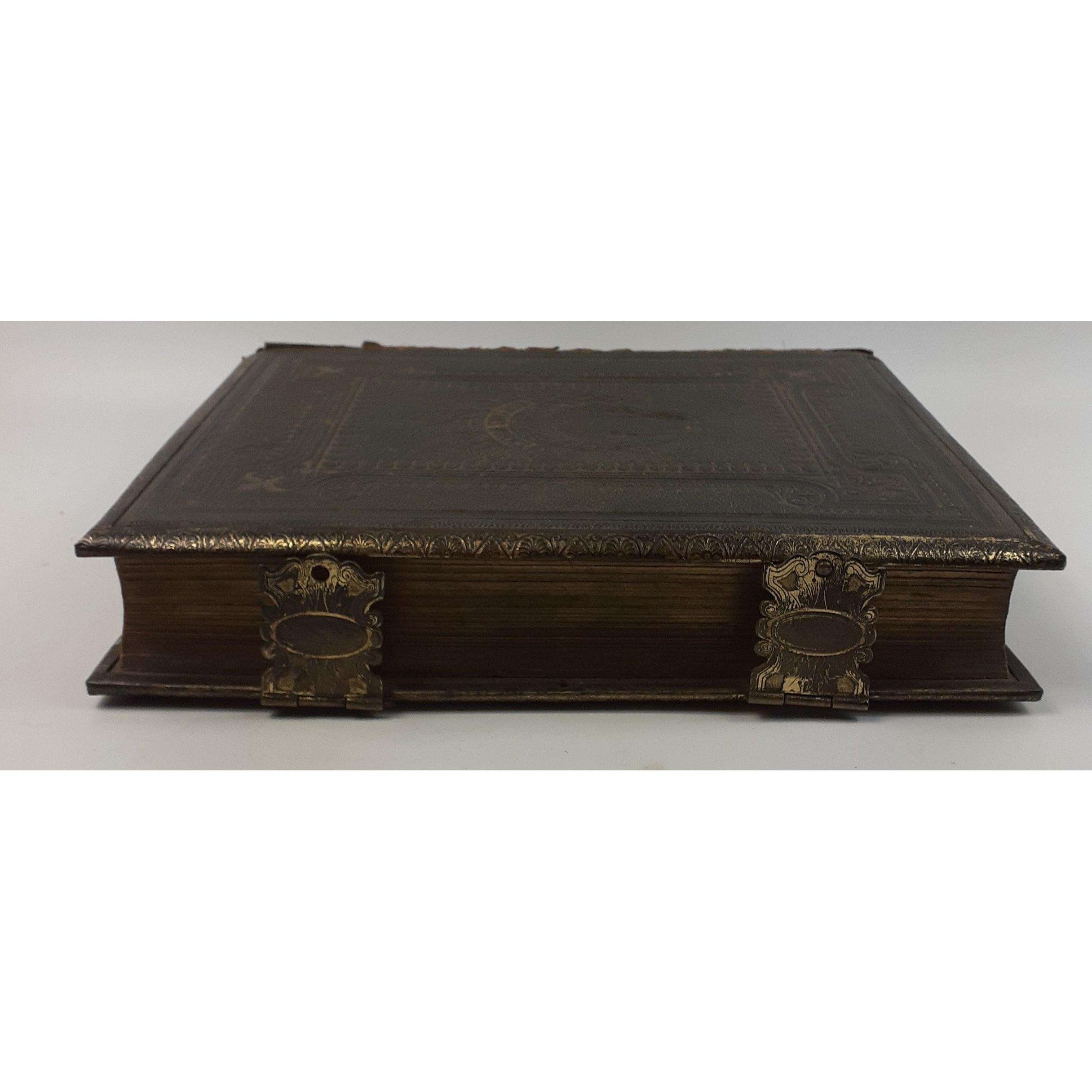 BUNYAN'S CHOICE WORKS The Pilgrim's Progress, The Holy War, The Barren Fig-Tree, Grace Abounding to the Chief of Sinners and Heart's Ease in Heart Trouble with Numerous Illustrations. Published by Cassell Petter Galpin & Co, undated. Fully bound in leather with clasp fastenings, front cover is detached, pages are tanned with some foxing but remains an impressive tome