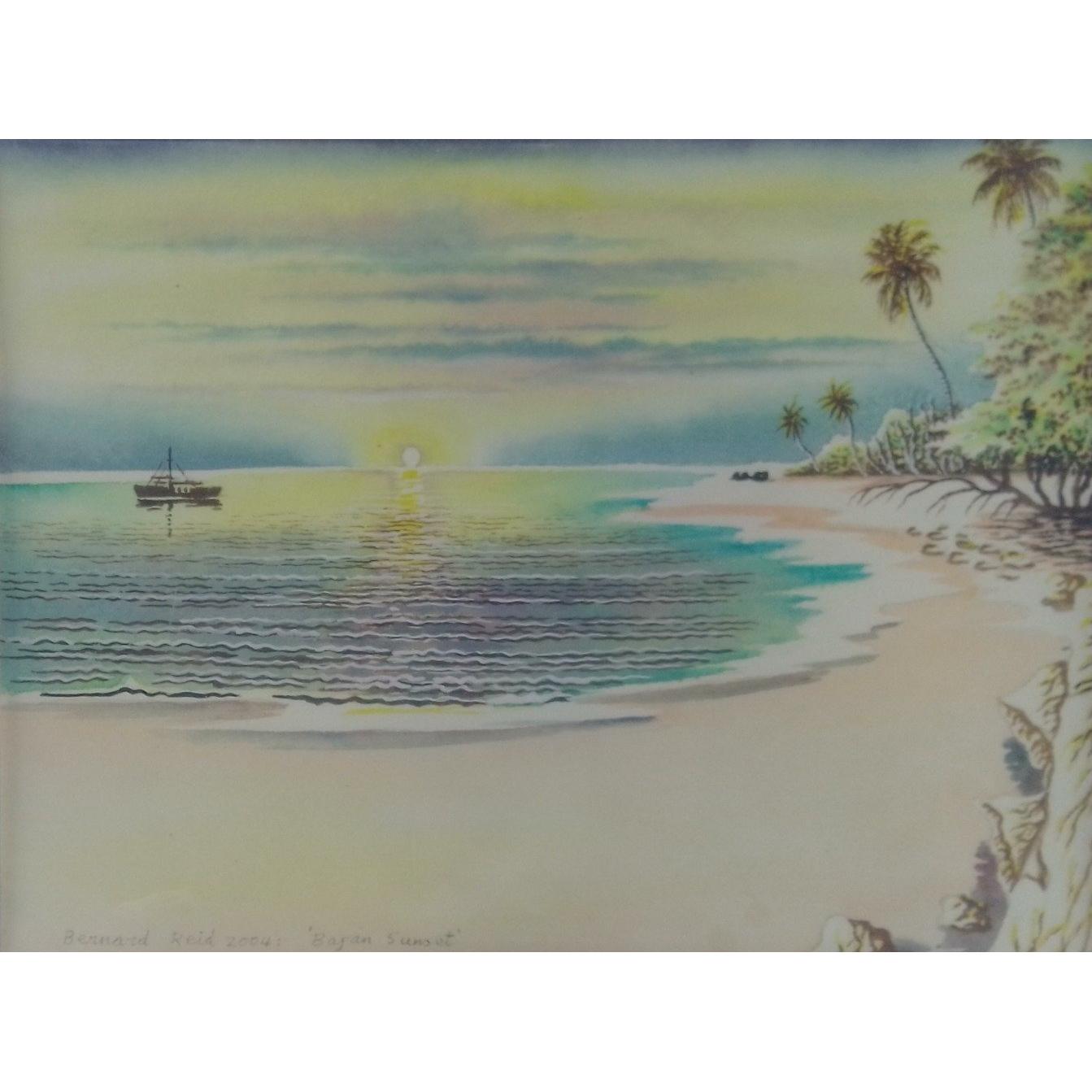 An original sunset watercolour by BERNARD REID 'Bajan Sunset' 2004, visible work 20x15cmApprox 1 pieces