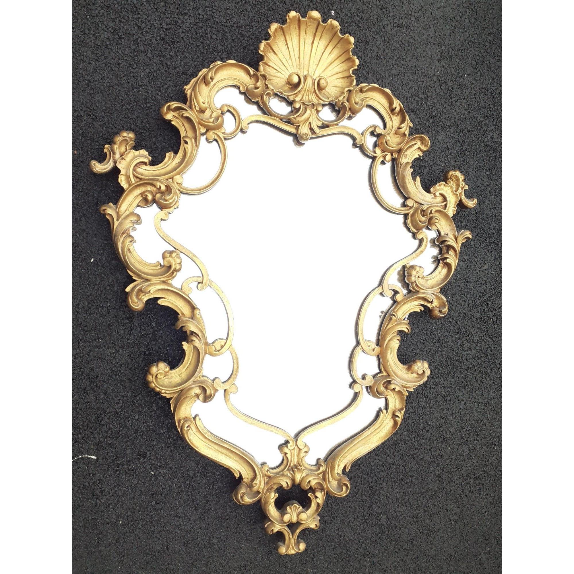 An impressive gesso gilt ornate mirror (think Snow White's stepmother) with clam shell finial and much scroll work H117cm x W87cm approx. A gorgeous pieceApprox 1 pieces