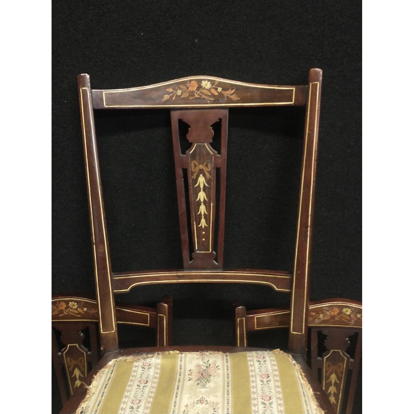 Three bedroom chairs with striped yellow and cream seat pads, turned legs and flower motifs. W: 39cm H: 85cm D: 37cm Seat H: 43cm approxApprox 3 pieces