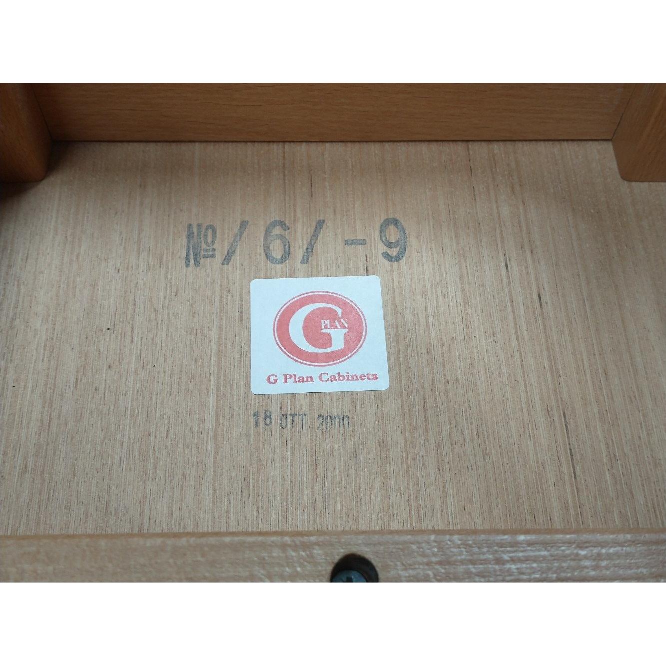 G-PLAN nest of 3 tables in modern style. Largest table has glass insert. Dimensions of largest: W: 56cm H: 52cm D: 44cm approx