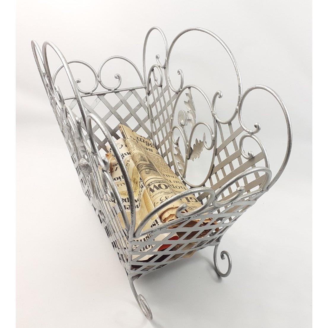 Pretty and useful - a wire magazine rack H40cm x W50cm, silver painted and in good condition Approx 1 pieces