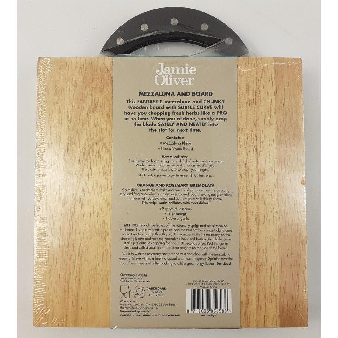 A sealed JAMIE OLIVER Mezzaluna and board 22x22xm