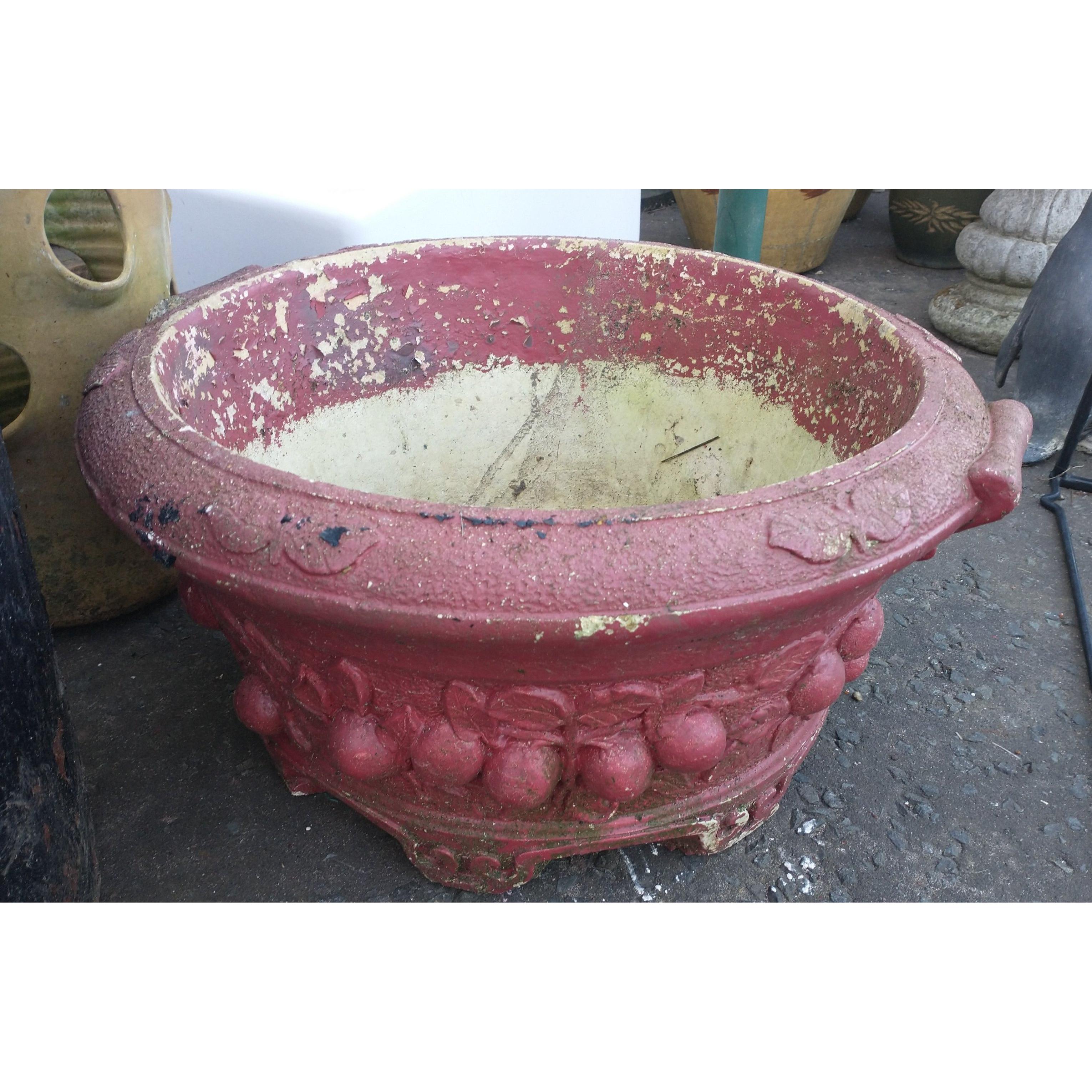 A red-painted garden planter by WILLOWSTONE with embossed fruit design, W55cmApprox 1 pieces