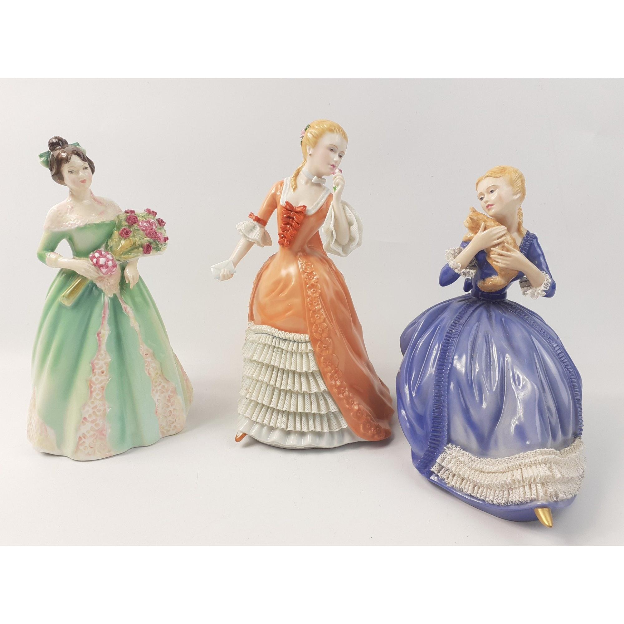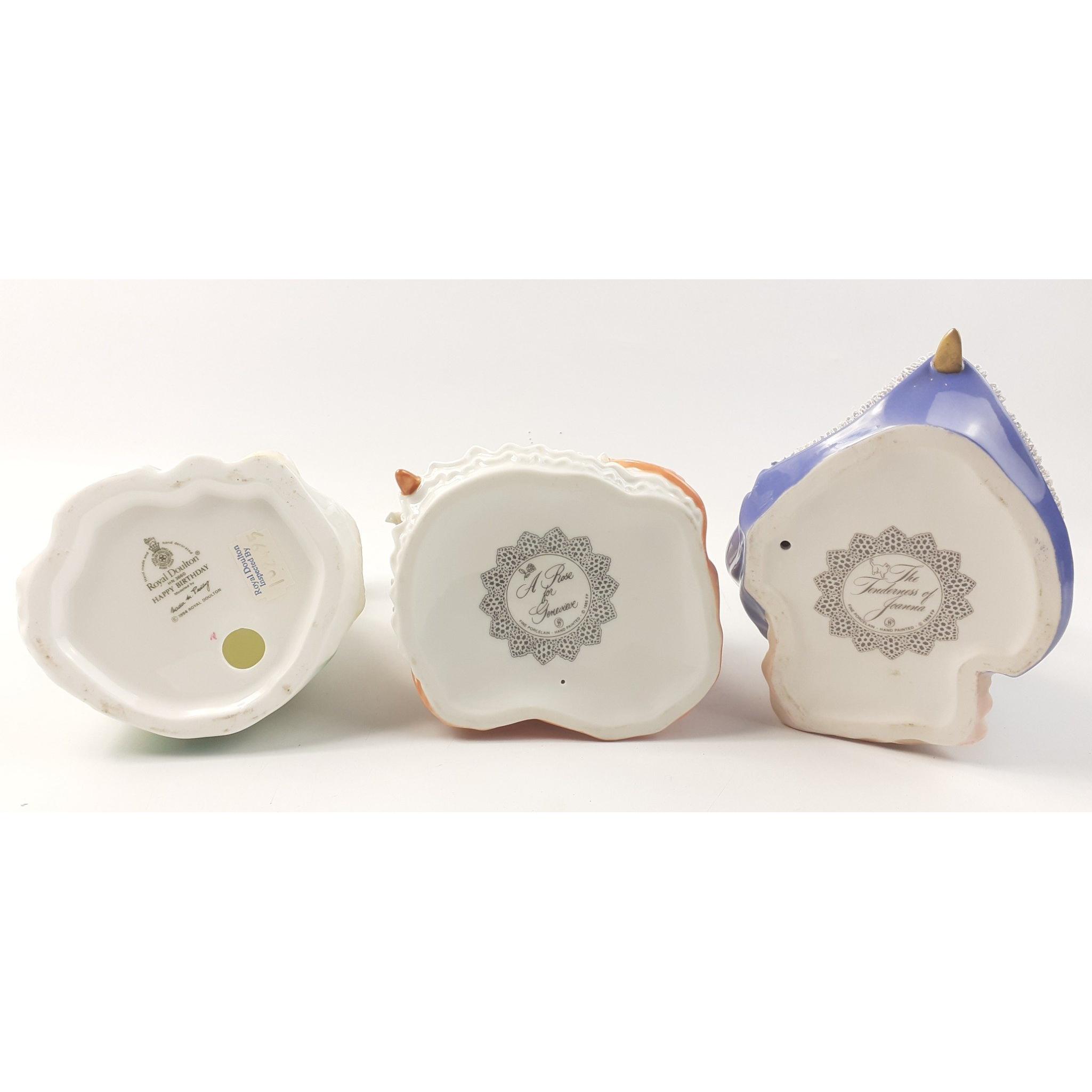Three lady figurines to include ROYAL DOULTON Happy Birthday, and two FRANKLIN MINT - The Tenderness of Joanna and A Rose of GenevièveApprox 3 pieces